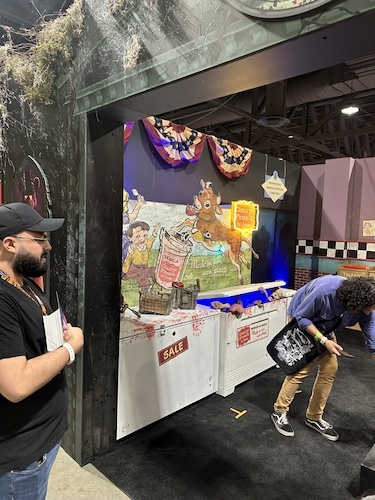 And just a few booths to the left of the Universal pop-up, guests could embrace a few of this year’s highly anticipated mazes with photo ops inspired by Terrifier, Five Nights at Freddy’s, and Fallout. The area had special cameras specifically to capture the perfect shot.