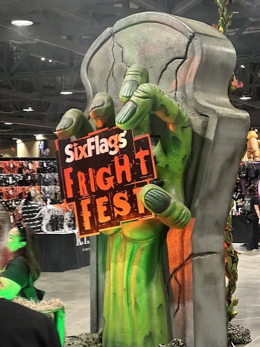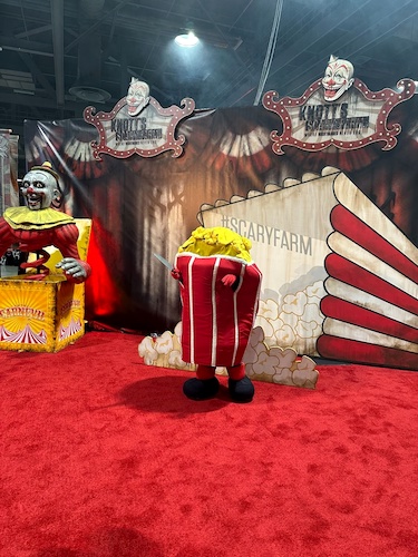 Horror Nights wasn’t the only Los Angeles area event preparing for the upcoming scream-filled season! Six Flags Magic Mountain and Knott’s Berry Farm are located just next door to Horror Night’s main booth, with Fright Fest filled with scare actors on stilts and Scary Farm hilariously referencing their CarnEVIL scare zone with a knife wielding popcorn bucket character photo op.