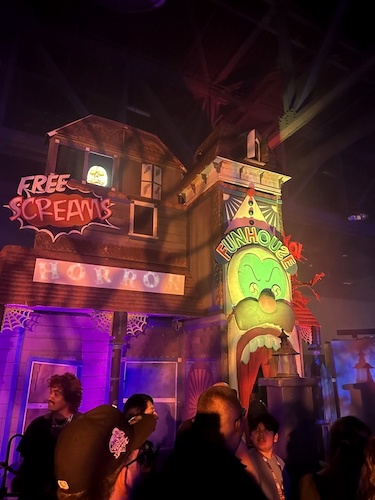 After being welcomed in by the USJ monster, guests were able to enjoy an elaborate display of moving figures, live actors, merchandise displays and a pin giveaway. Kicking off the tour, Michael Myers was in attendance to take pictures with guests.