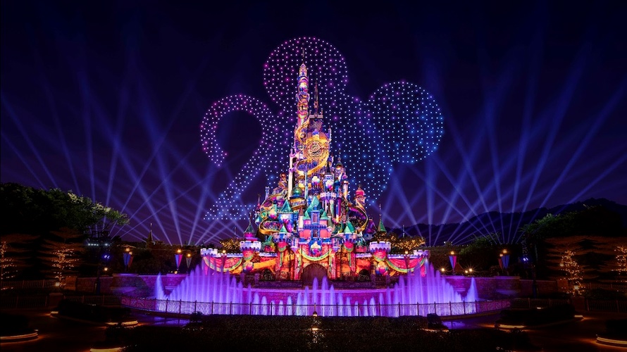- As seen in the image above, drones will create an impressive “2" and Mickey head in the sky — forming the signature 20th anniversary logo alongside the Castle of Magical Dreams.