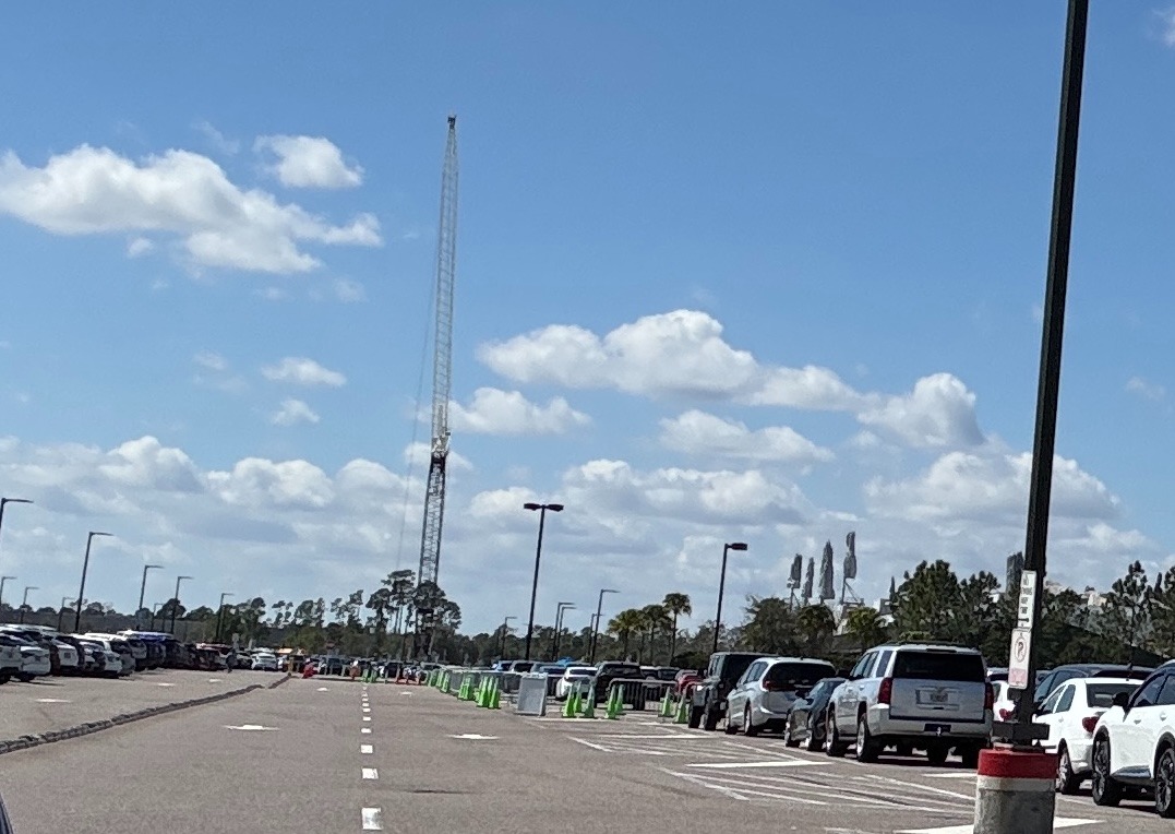 - While the building hasn’t begun to rise just yet, a massive crane can now be seen, hinting that the attraction’s showbuilding will soon go vertical.