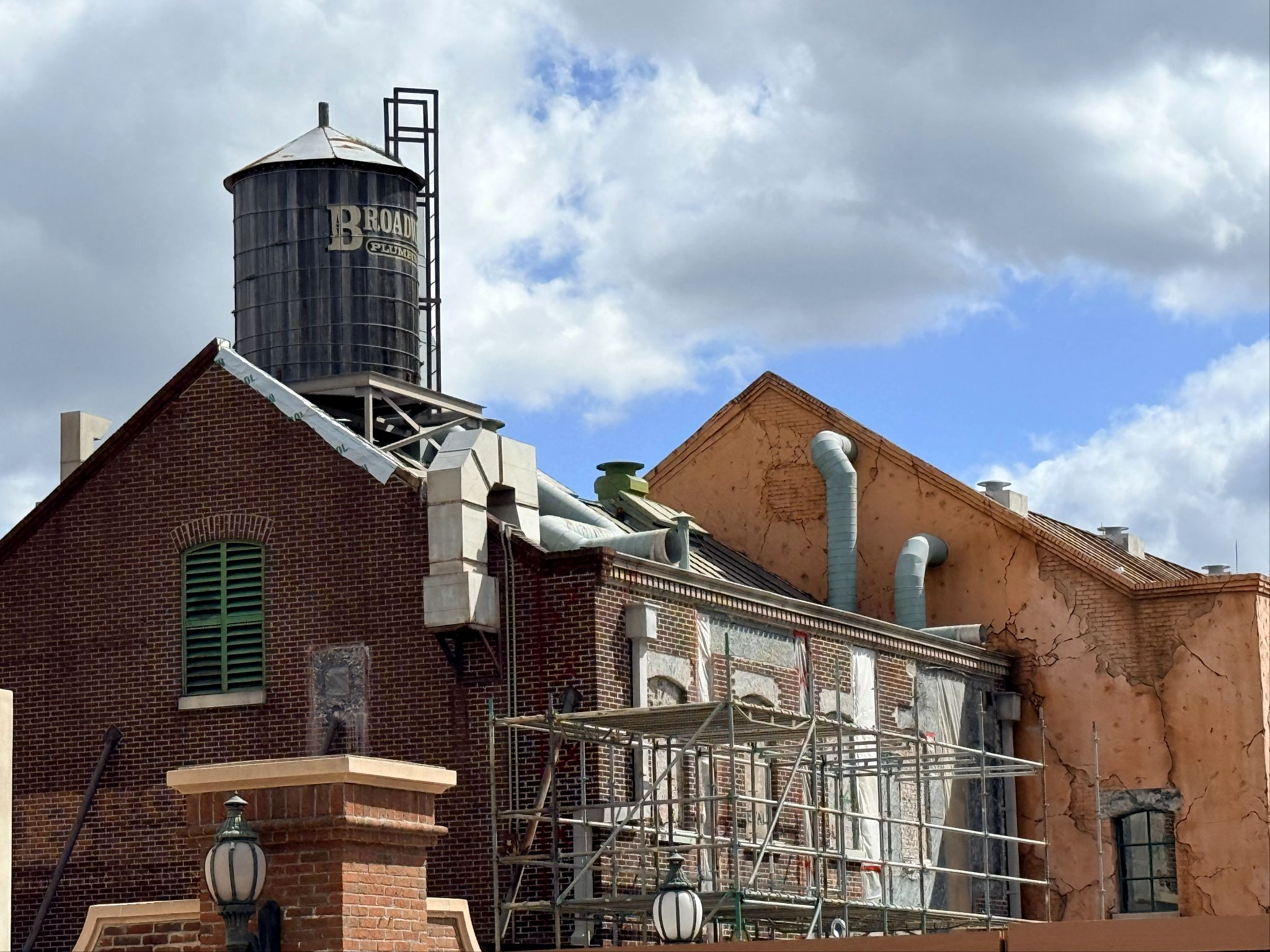 - While much of the construction isn’t visible to the public, some of the closer buildings to the construction fence are receiving exterior work, including the facade of the former Muppet*Vision 3D and the Gonzo’s Royal Flush bathroom area attached to PizzeRizzo.