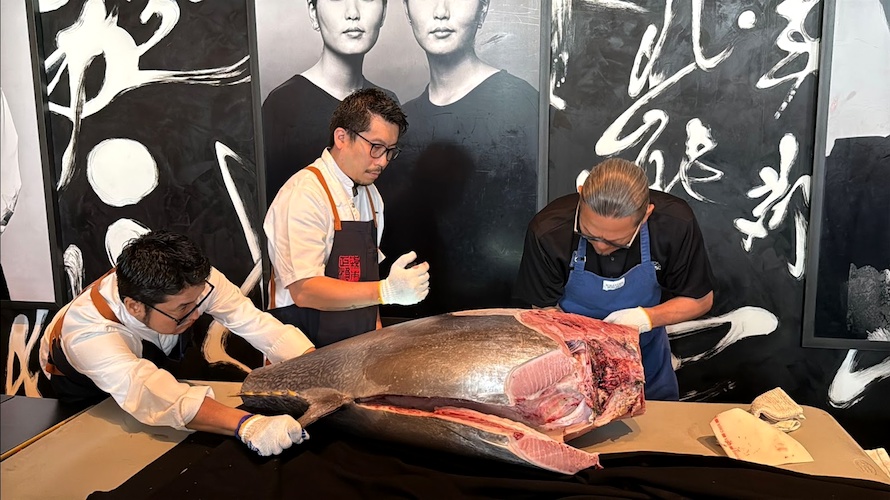 Morimoto Asia is located in The Landing section of Disney Springs. At this special event, guests were able to enjoy Instagram-worthy meet-and-greets, sample Chef Morimoto’s renowned sake, and indulge in Morimoto Asia’s signature dishes. The event started with a bluefin tuna carving ceremony led by Iron Chef Masaharu Morimoto himself.