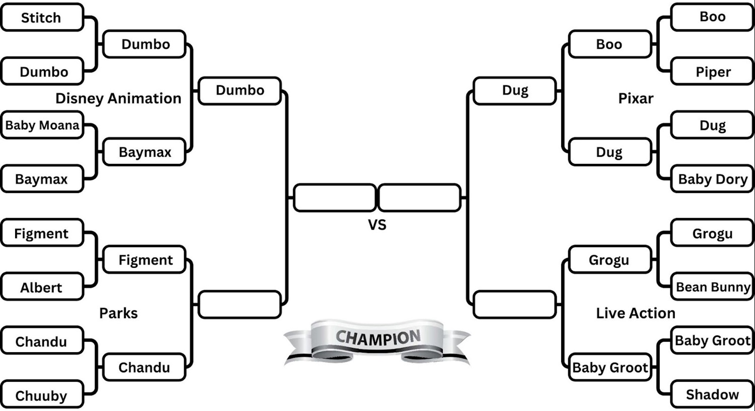 We have reached the Elite 8 of our 11th annual Mouse Madness tournament! This year, we are attempting to crown the cutest Disney character. The competition has been fierce and we have seen some close matchups and some shocking upsets. Now, with just seven matchups left to go, we are getting close to learning who is the cutest Disney character ever!