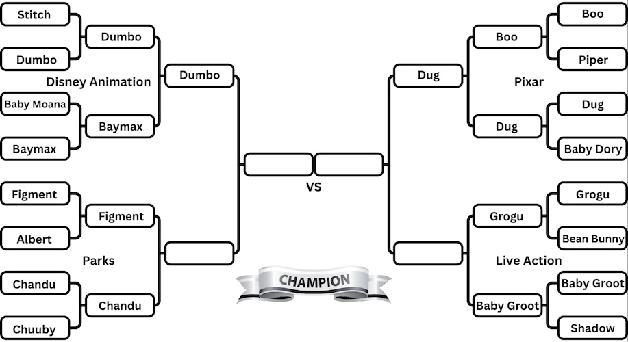 Be sure to come back tomorrow as we reveal the winner of today’s poll and continue onward through our bracket to crown the cutest Disney character!