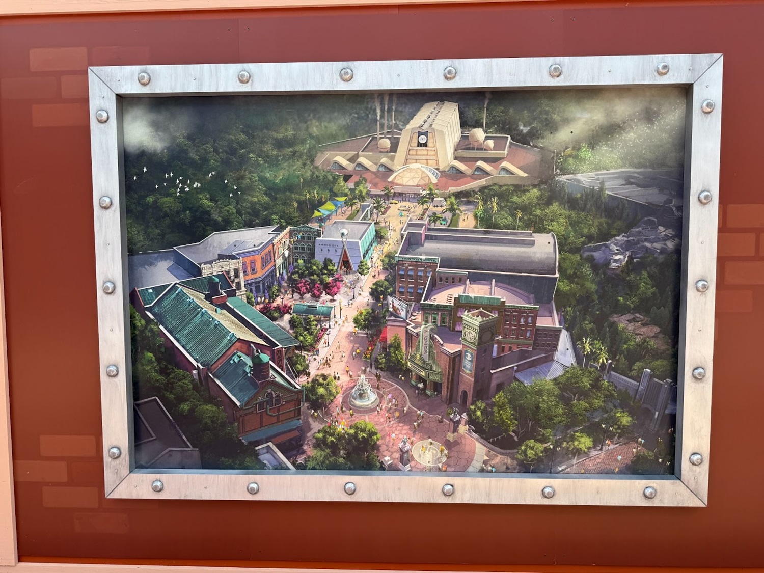 Updated concept art for the new Monsters Inc. area also adorns the walls, which while similar to the originally released art, has received a few changes.