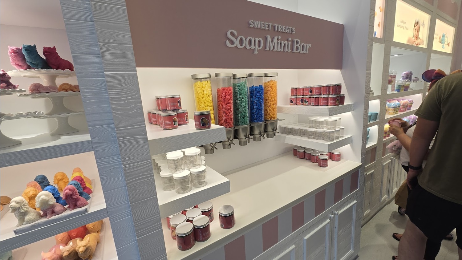 - Additionally, shoppers of all ages can enjoy a self-service Soap Mini Bar to dispense their own blend of soap minis in a variety of shapes and scents.