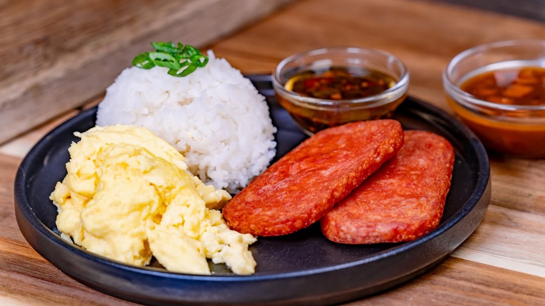 • Bengal Breakfast Bowl at Bengal Barbecue: White rice, scrambled eggs, fried spiced ham, gravy, and chile oil