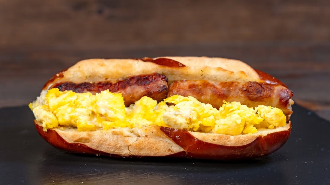 • Breakfast Cheesy Pretzel Bread at Maurice’s Treats: Cheesy garlic pretzel bread with scrambled eggs and sausage