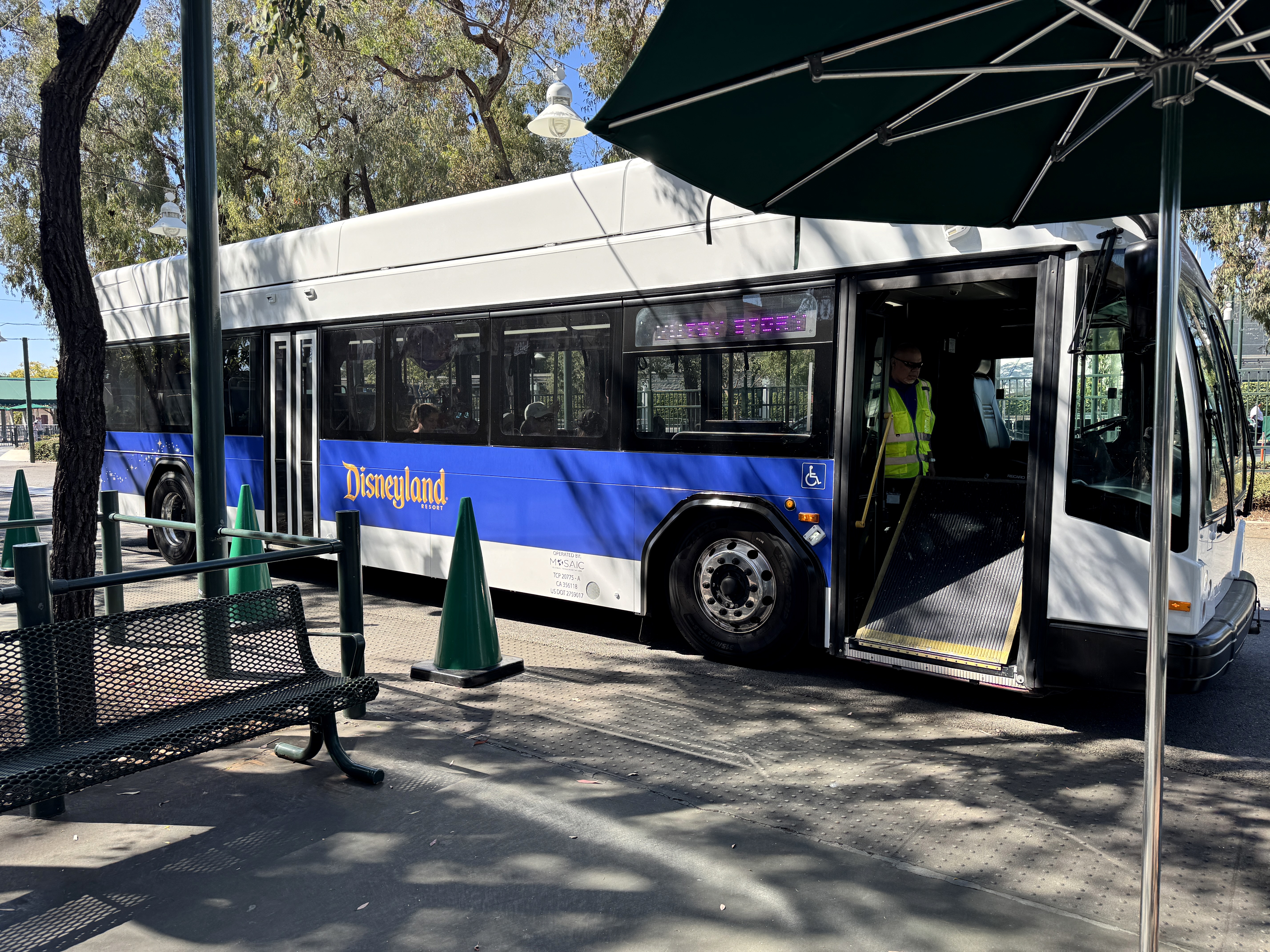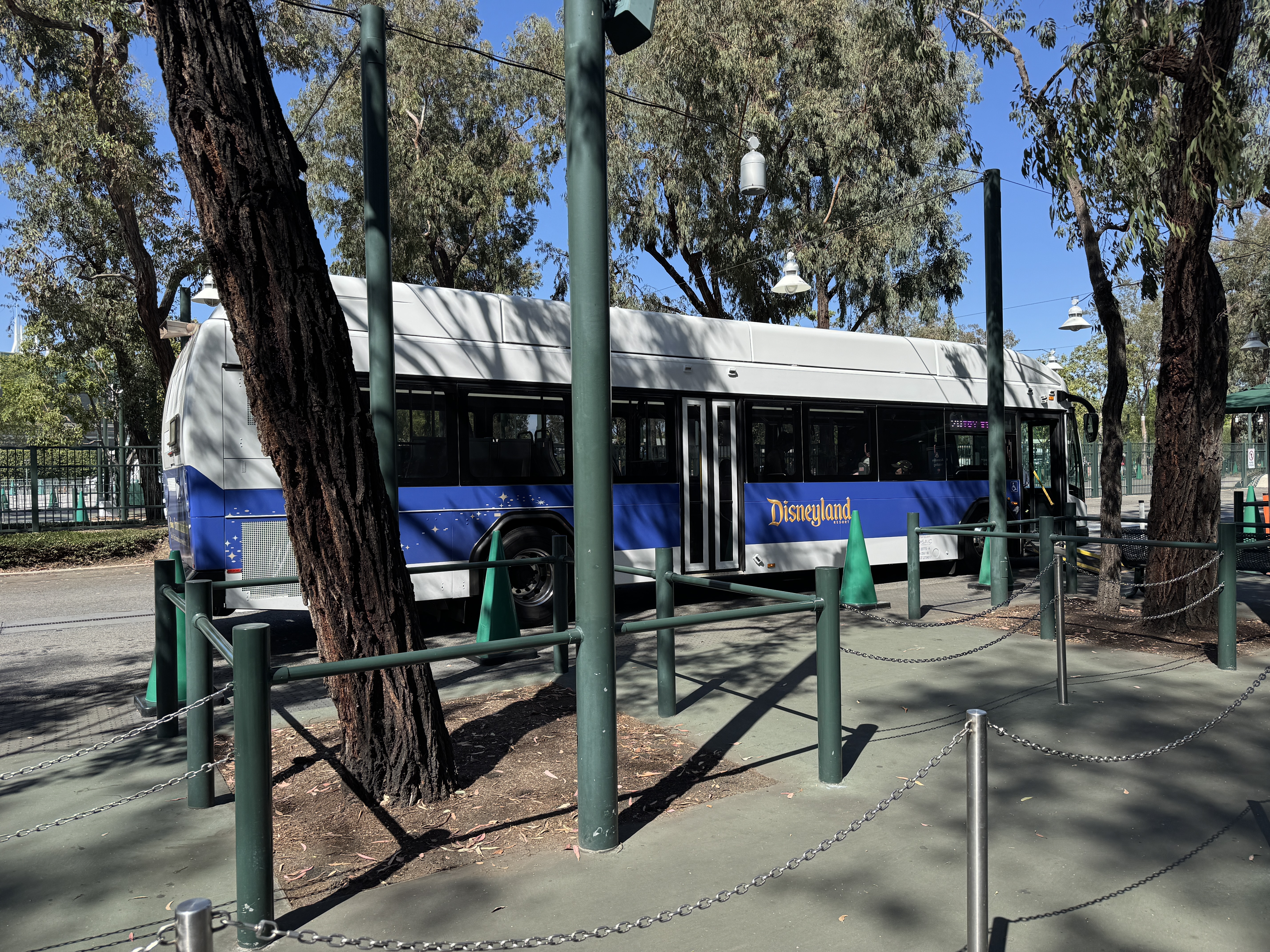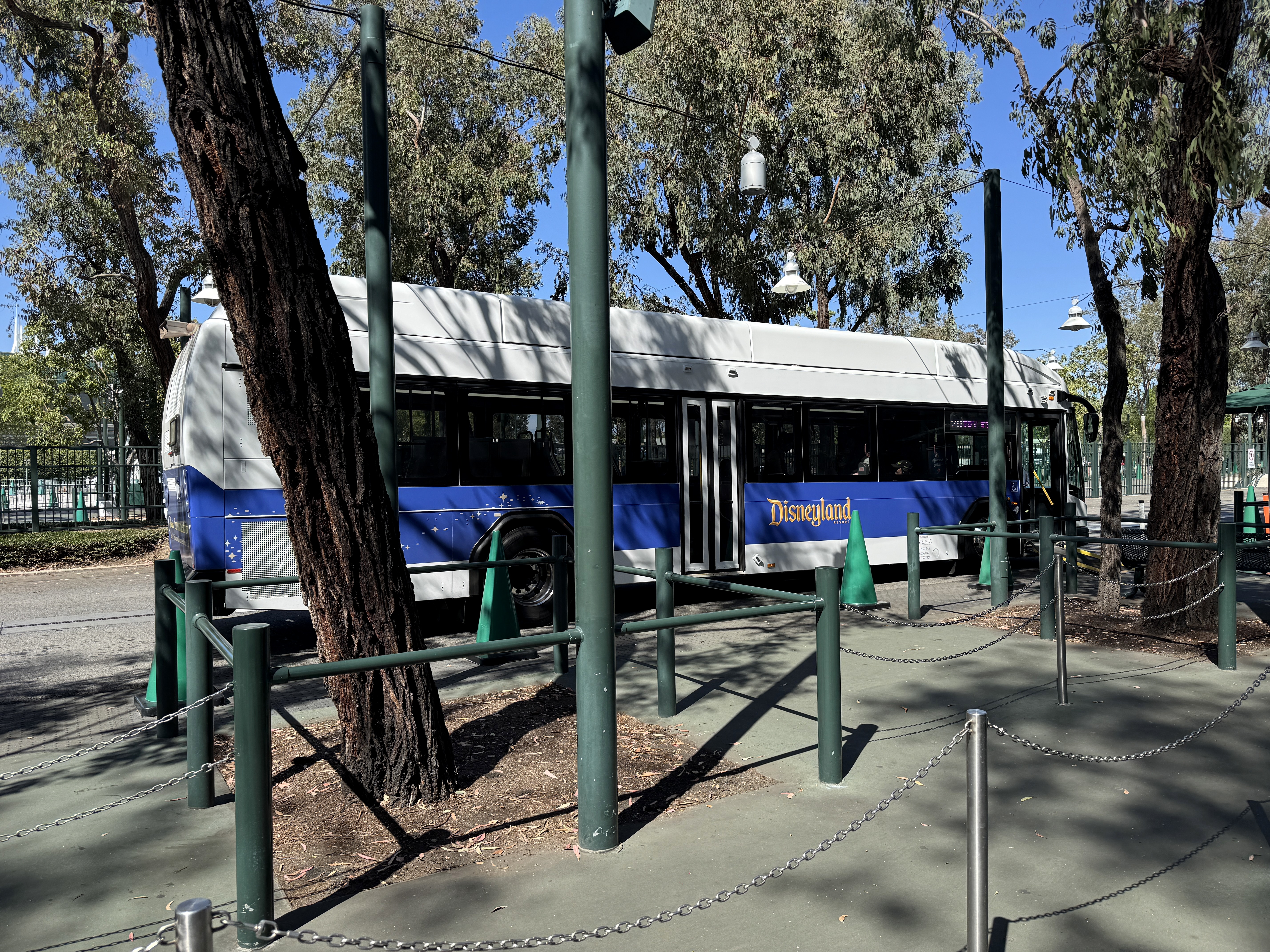 The prior ART buses were blue with branding for that transportation system. Now, plain white buses and ones with the Disneyland Resort logo are being used, making use of the same contractor that operates cast member shuttles at the resort.