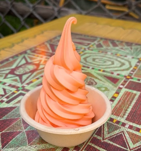 3. **Comparative Taste Description**: Compare the new peach Dole Whip flavor to the classic pineapple flavor and mention any notable characteristics, like sweetness or texture differences.