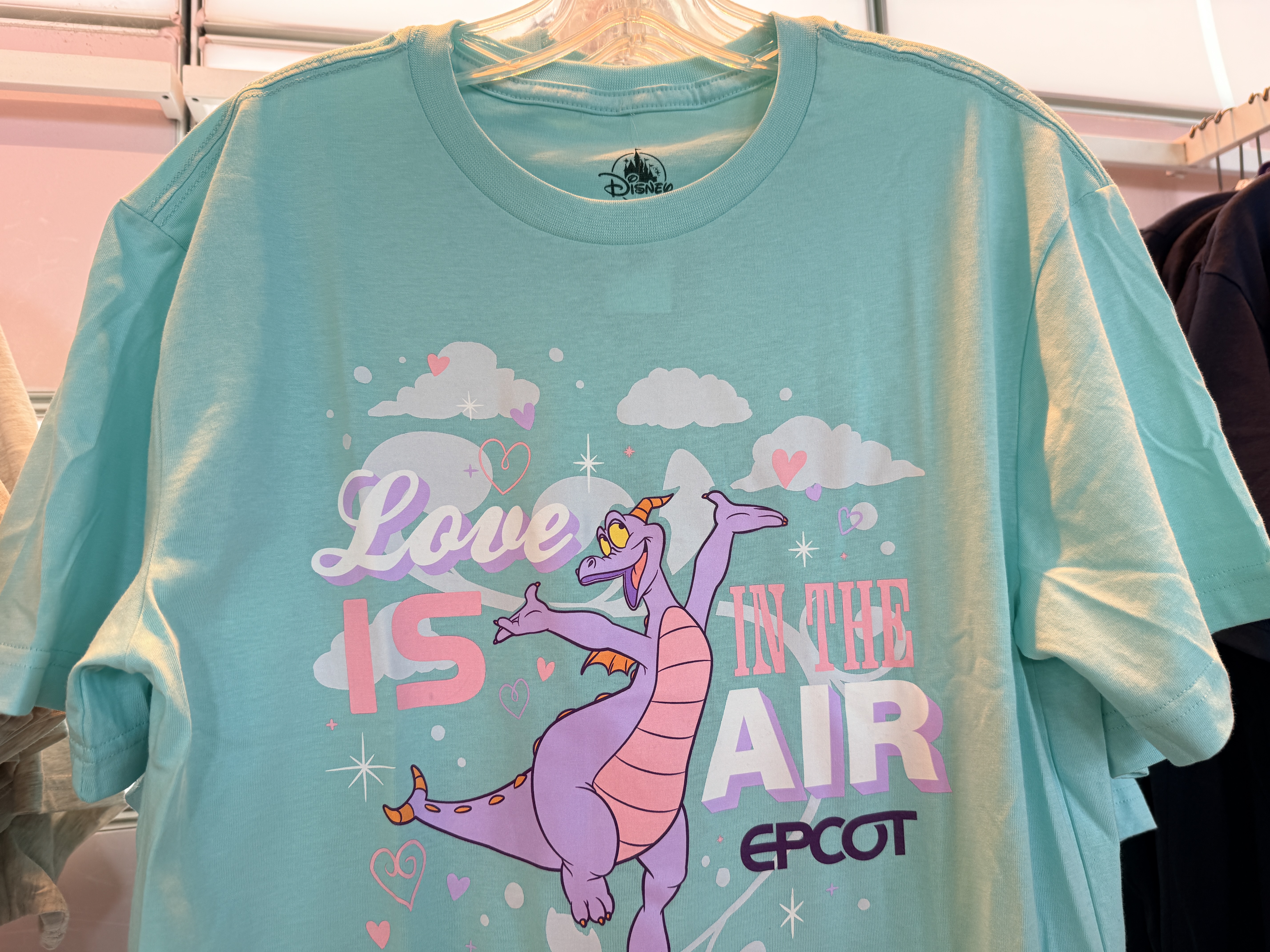 Valentine's Day gets a nod via this new love-filled Figment shirt featuring the EPCOT logo.