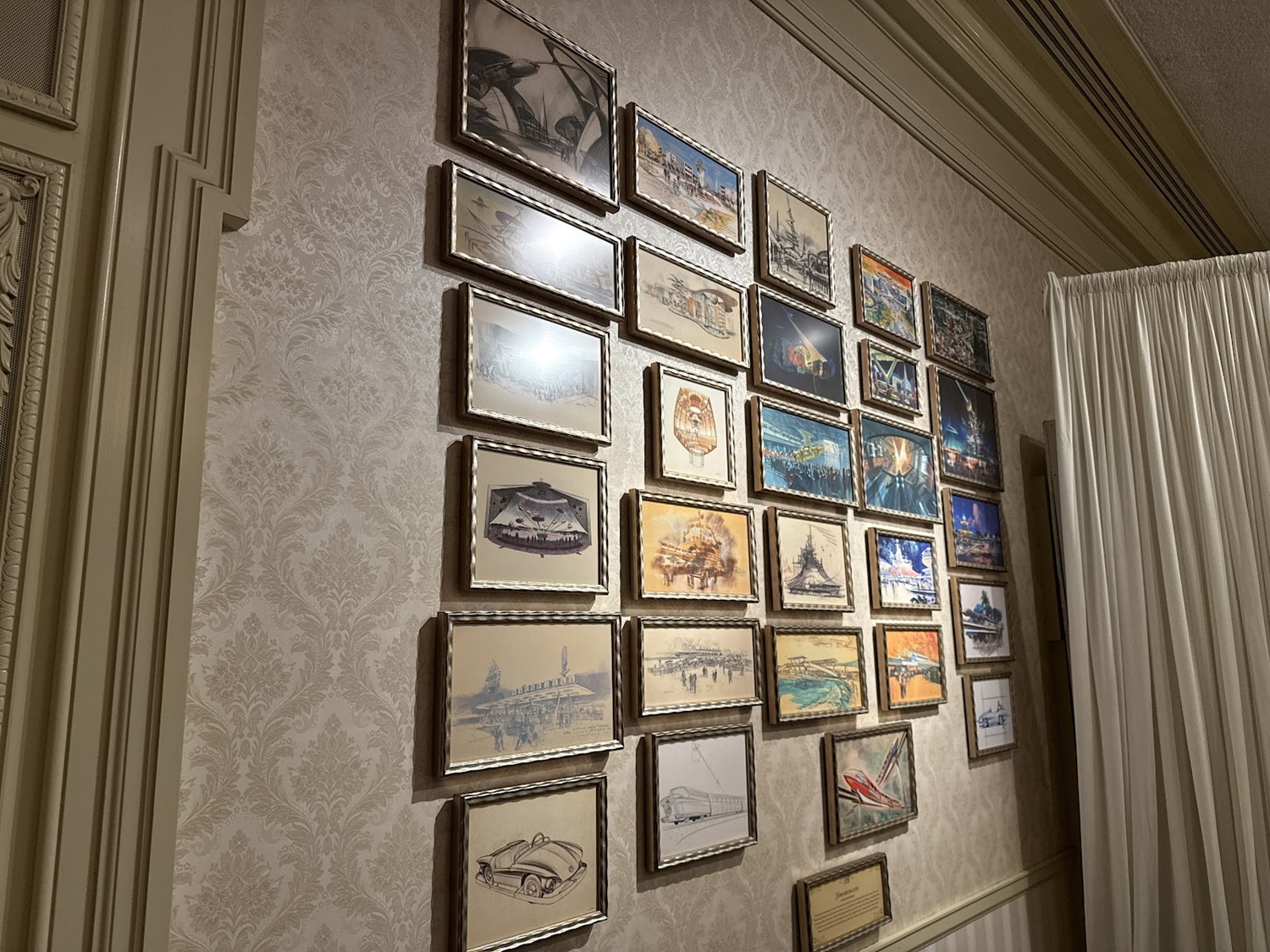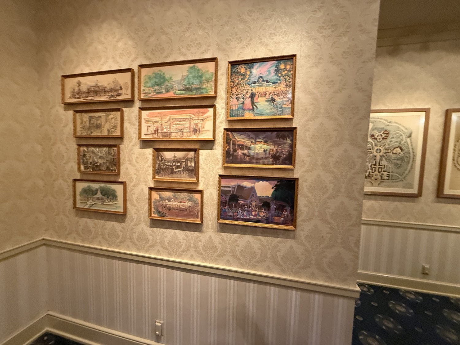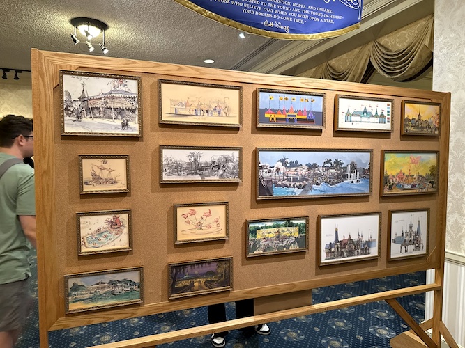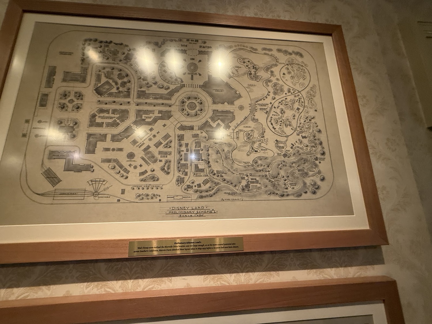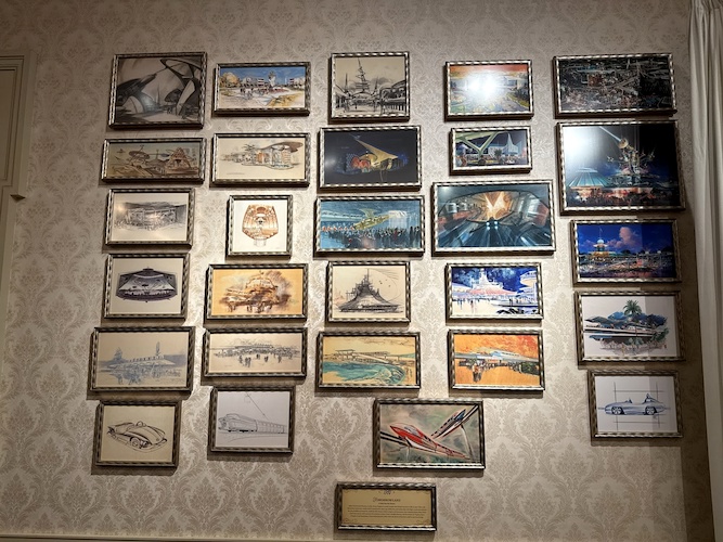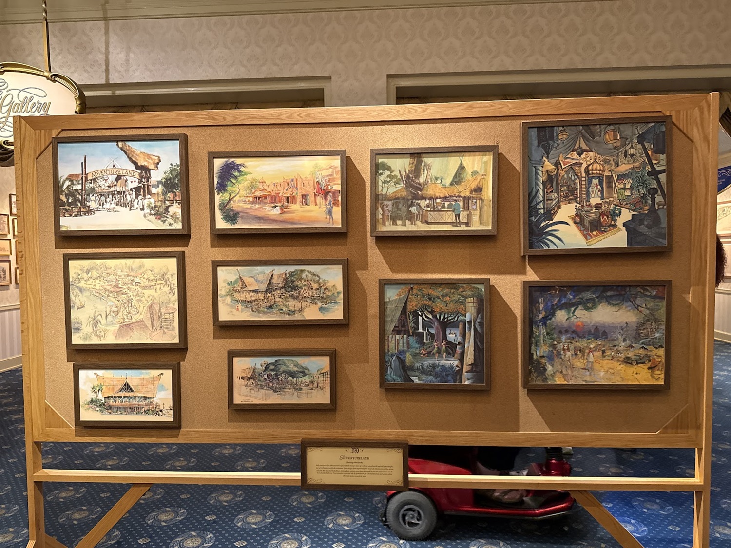 Once inside, guests can spot the original bench that Walt Disney was sitting on when he thought of Disneyland that has been in the lobby for quite some time. From there, it's a numerous set of displays celebrating each land of the park and art for their attractions and experiences.