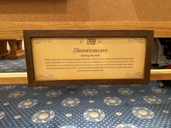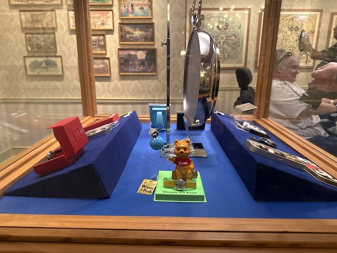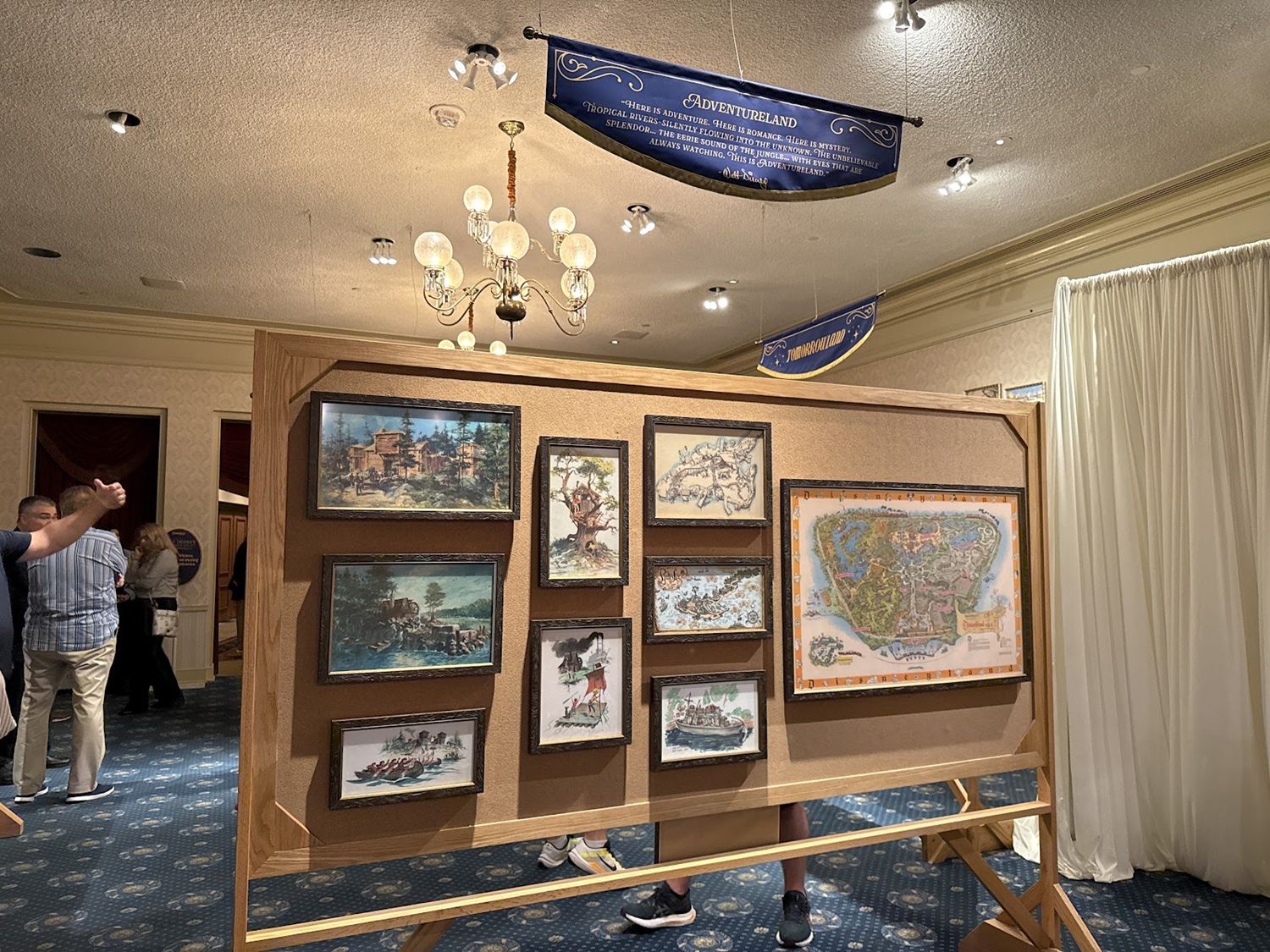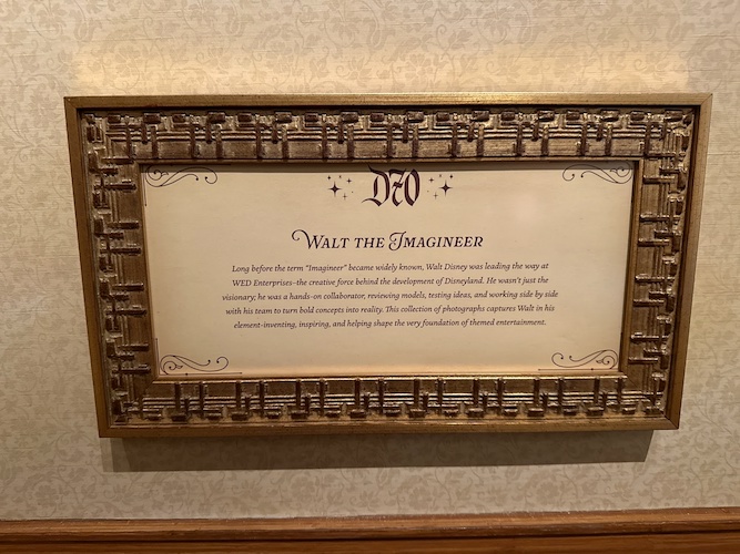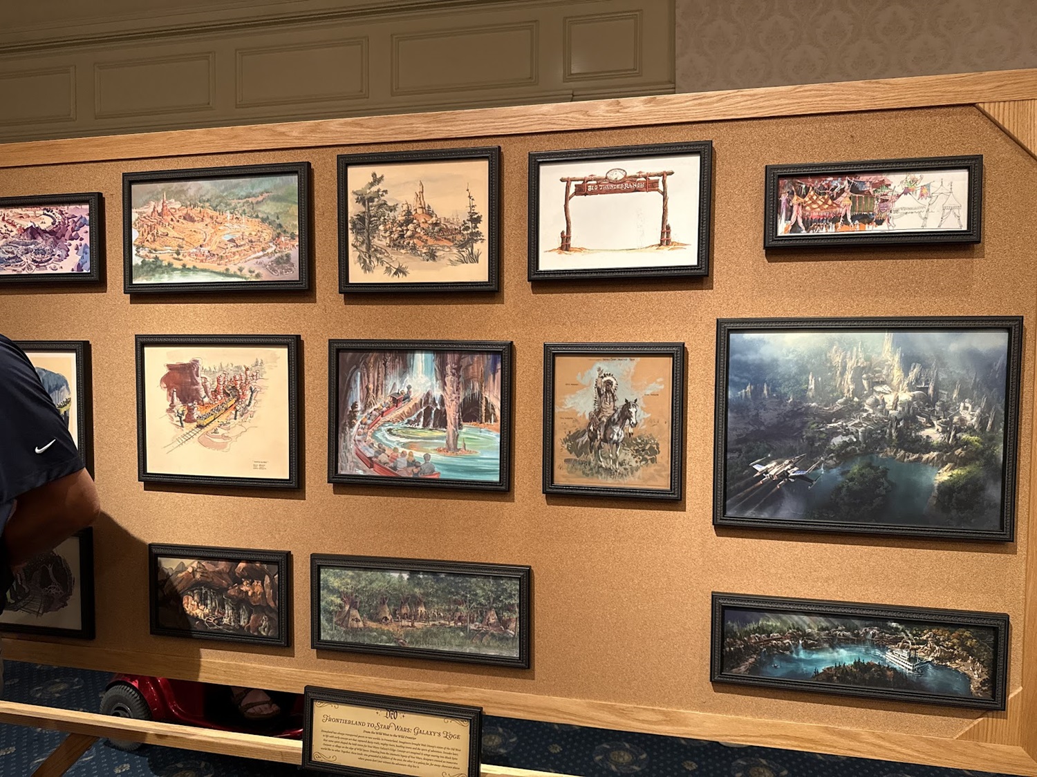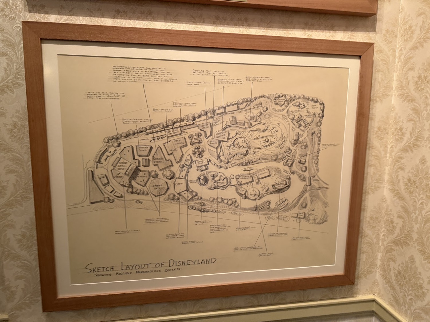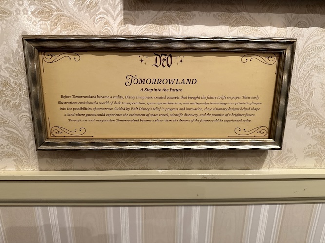 Once inside, guests can spot the original bench that Walt Disney was sitting on when he thought of Disneyland that has been in the lobby for quite some time. From there, it's a numerous set of displays celebrating each land of the park and art for their attractions and experiences.