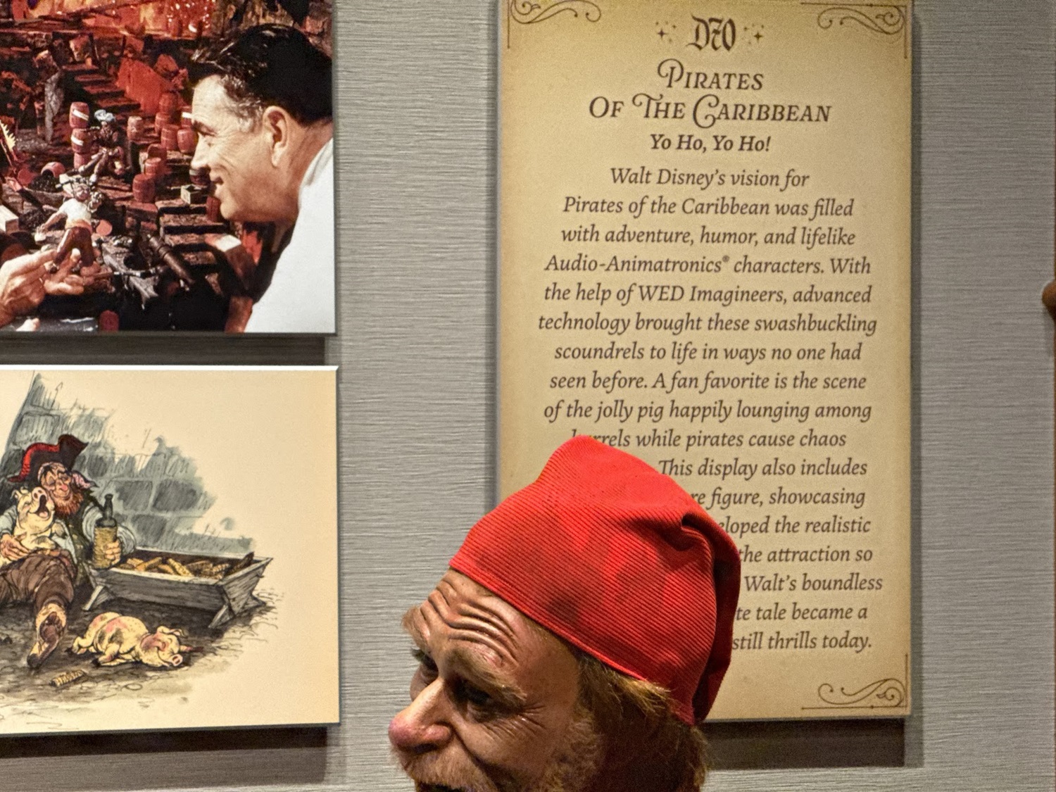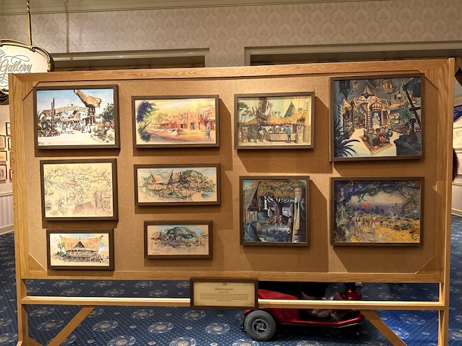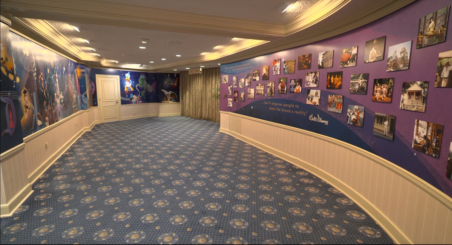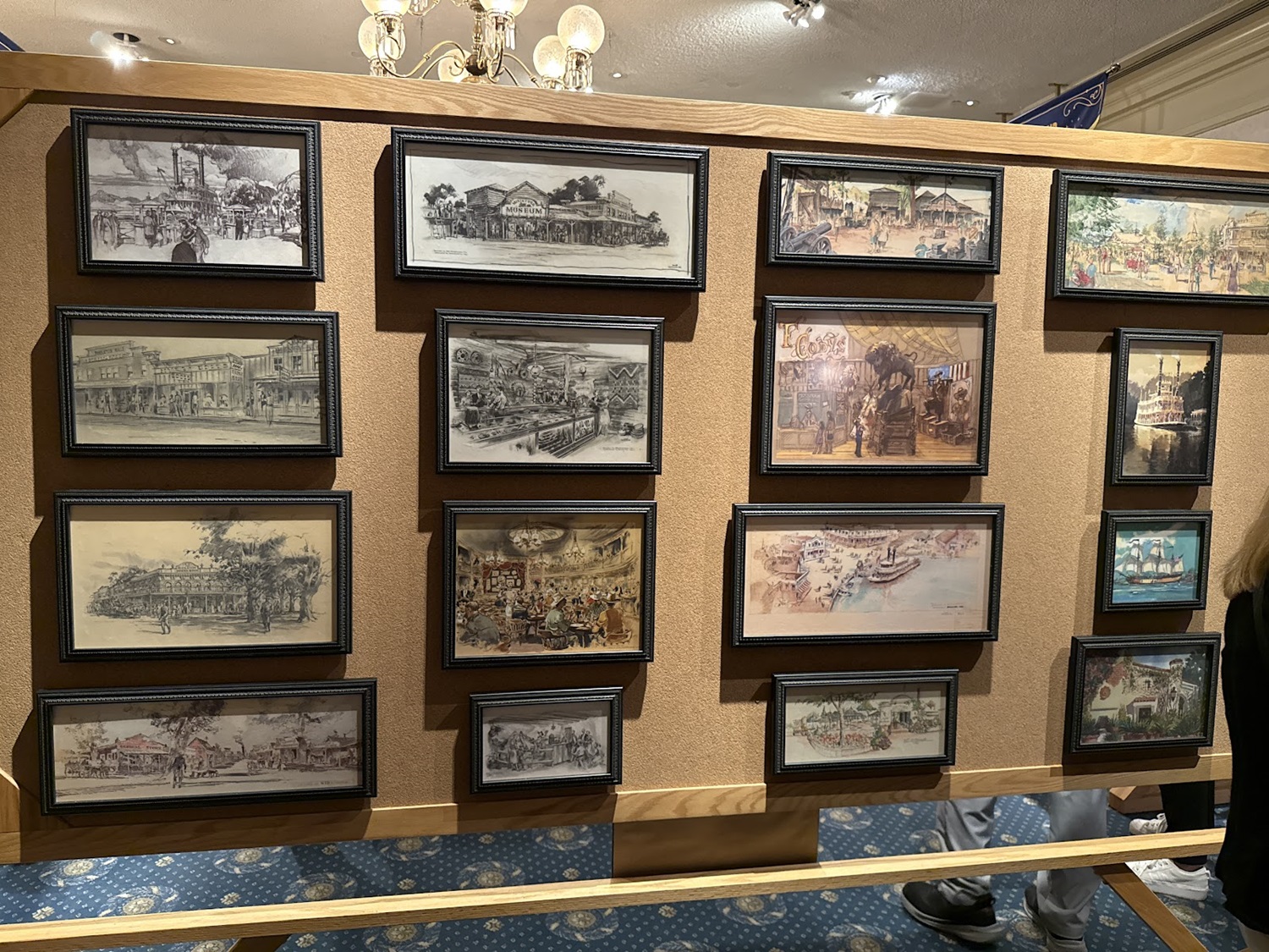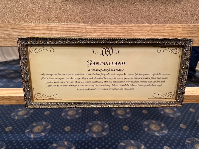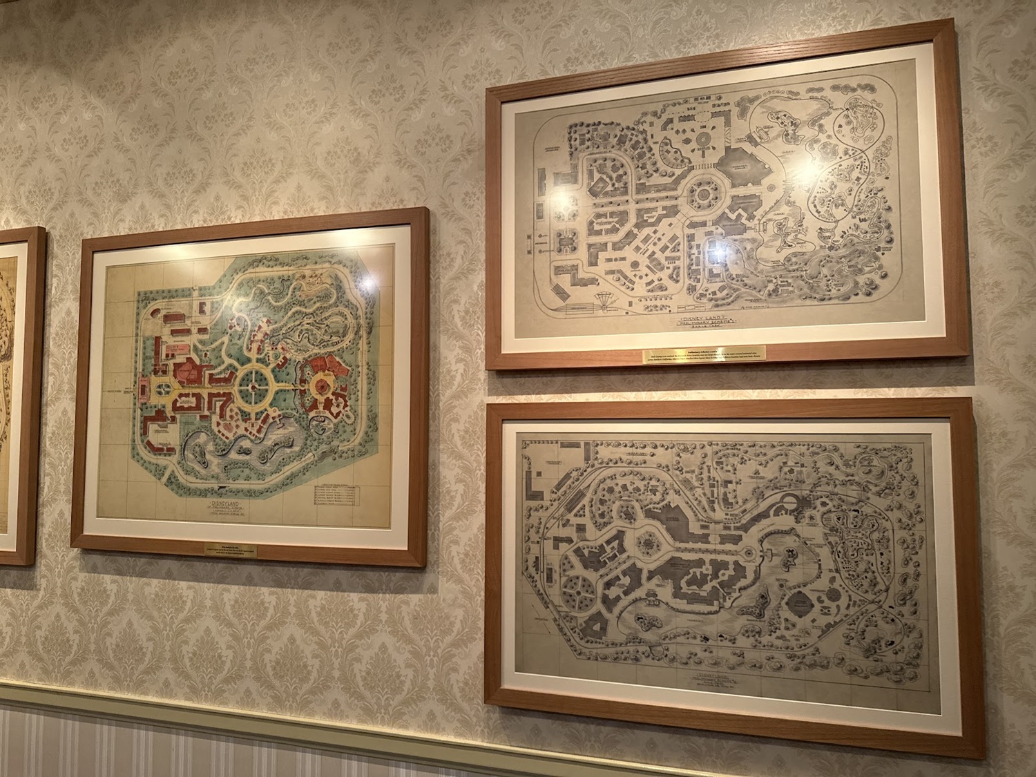 Once inside, guests can spot the original bench that Walt Disney was sitting on when he thought of Disneyland that has been in the lobby for quite some time. From there, it's a numerous set of displays celebrating each land of the park and art for their attractions and experiences.