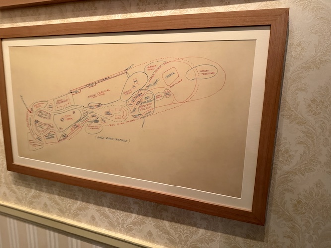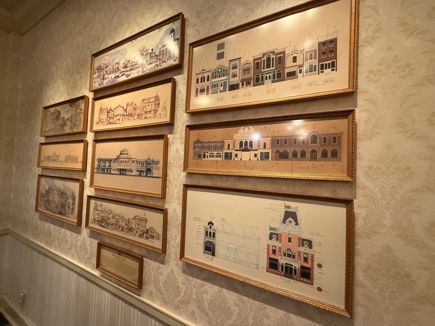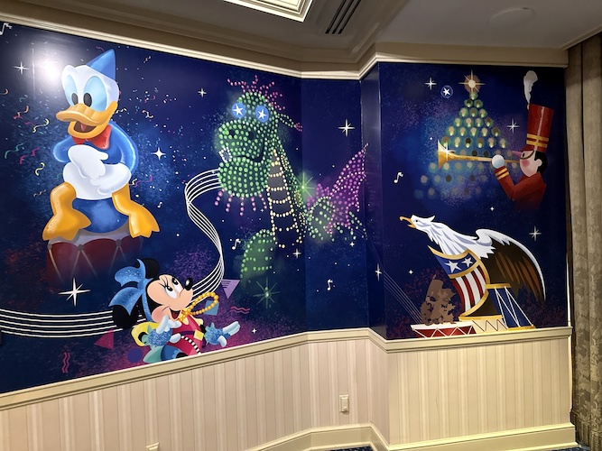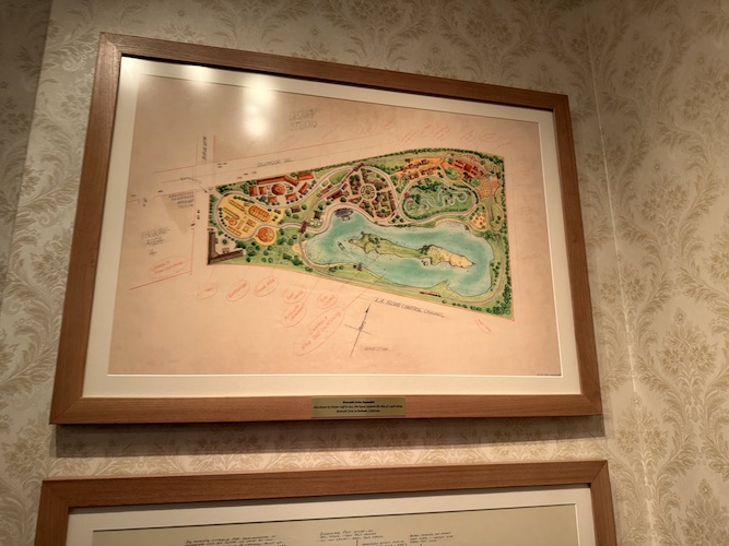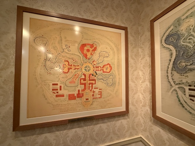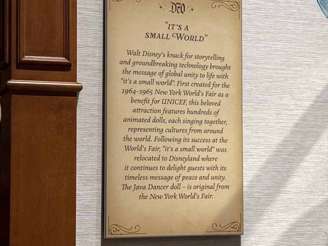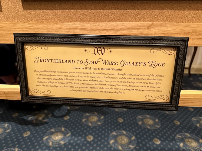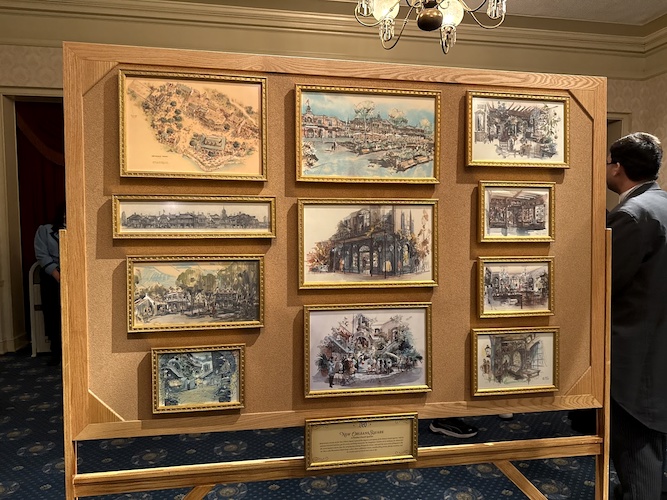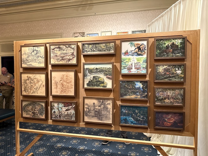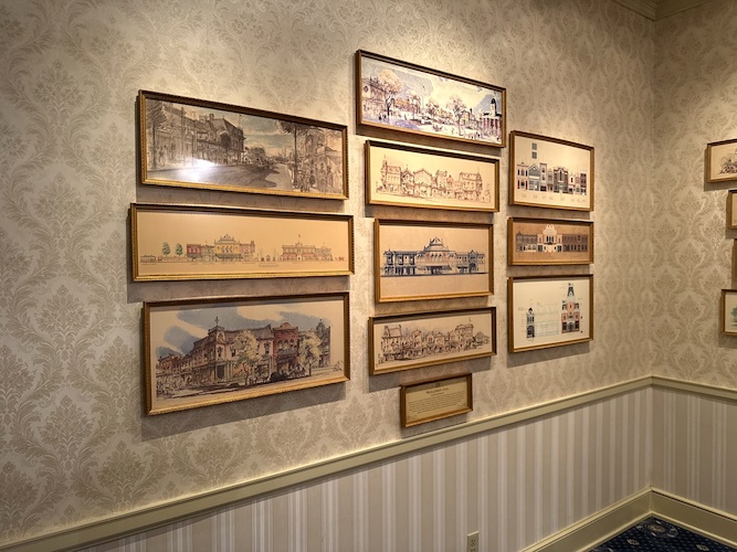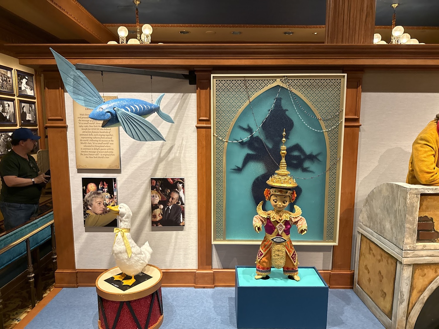 Once inside, guests can spot the original bench that Walt Disney was sitting on when he thought of Disneyland that has been in the lobby for quite some time. From there, it's a numerous set of displays celebrating each land of the park and art for their attractions and experiences.