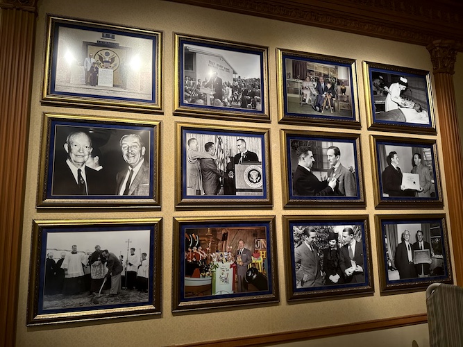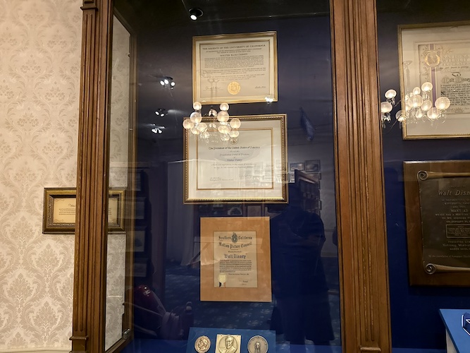 As we get closer to the theater, the exhibit space gets a bit more personal into Walt’s life - with photos of Walt with dignitaries and other important figures, as well as milestones in his career.
