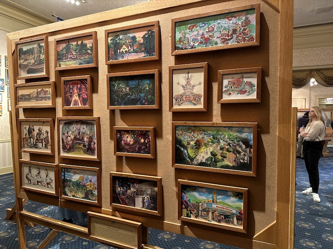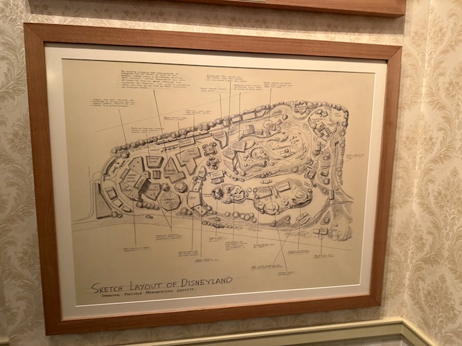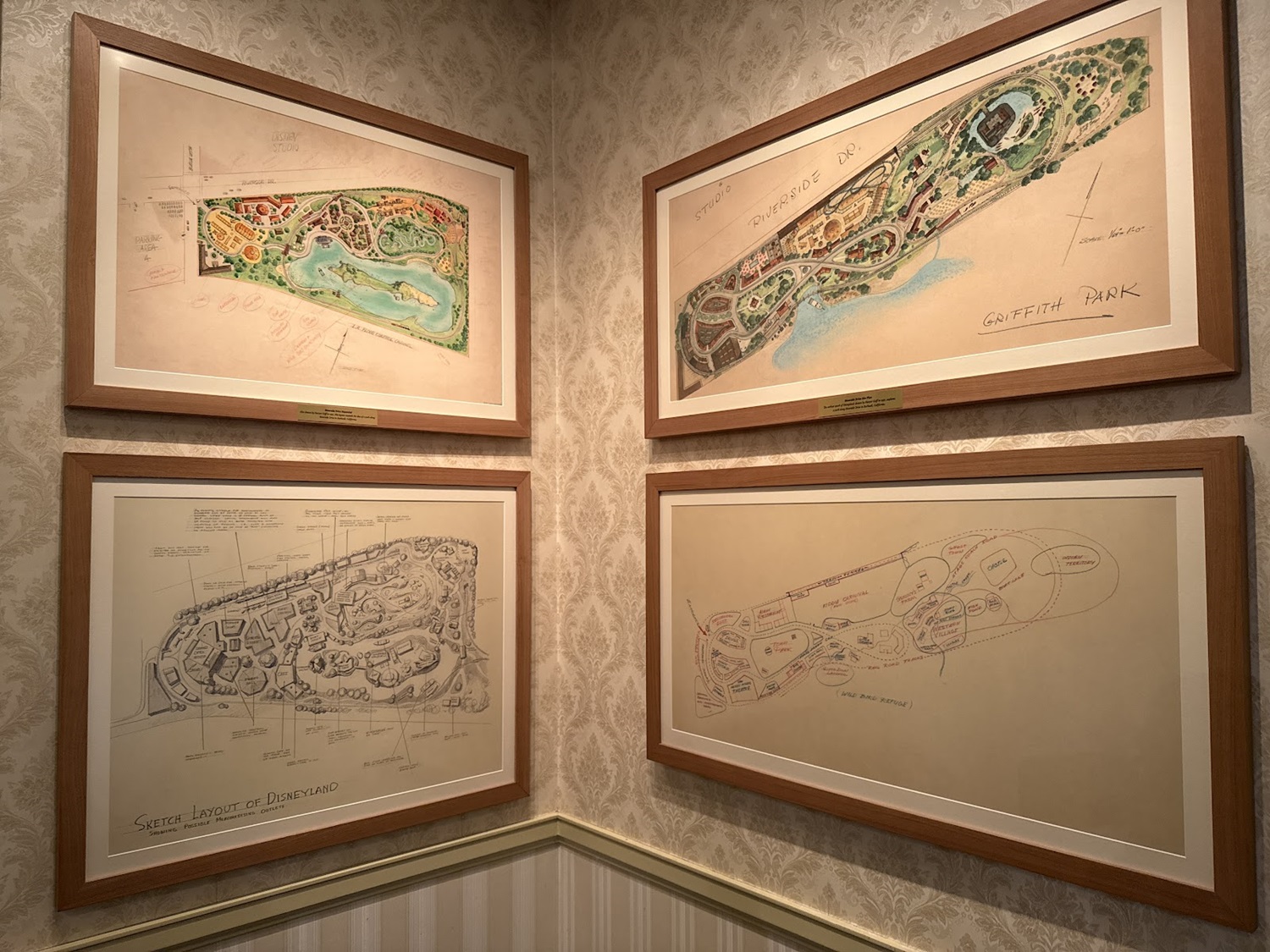 A special corner also features art that denotes the evolution of Disneyland from an idea of a “Mickey Mouse Park" across the street from the Burbank studio.
