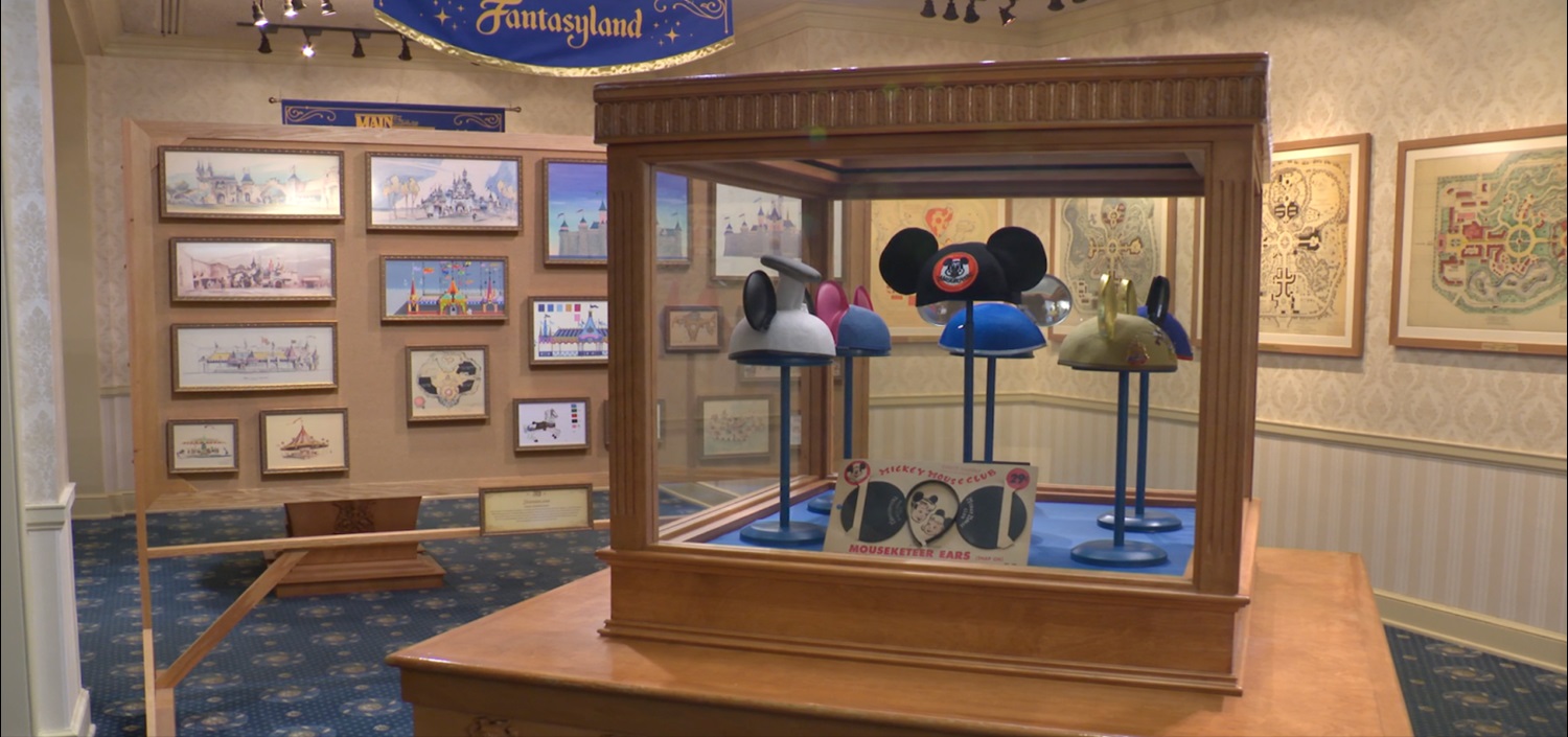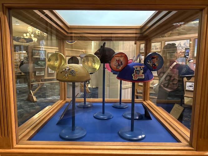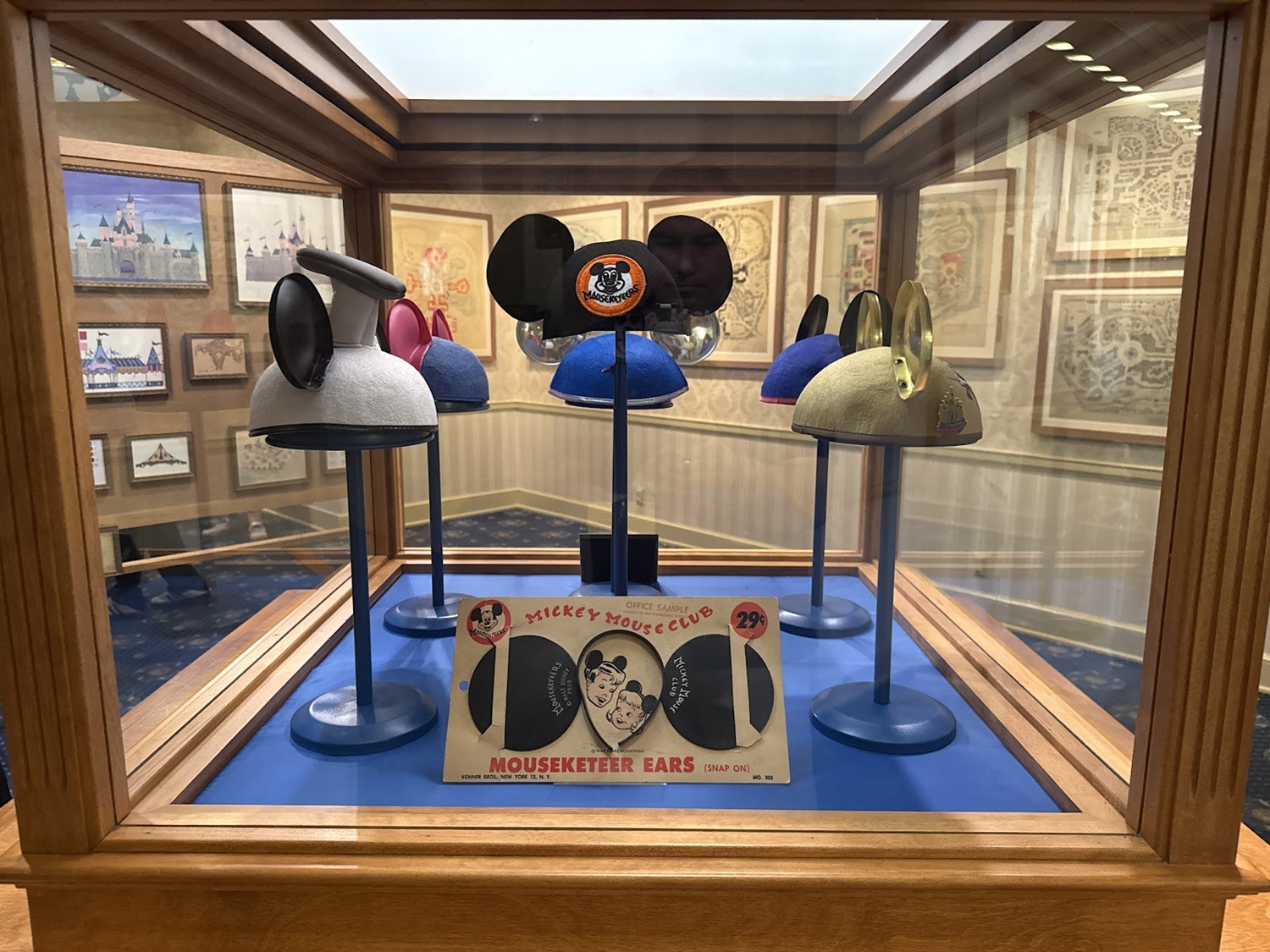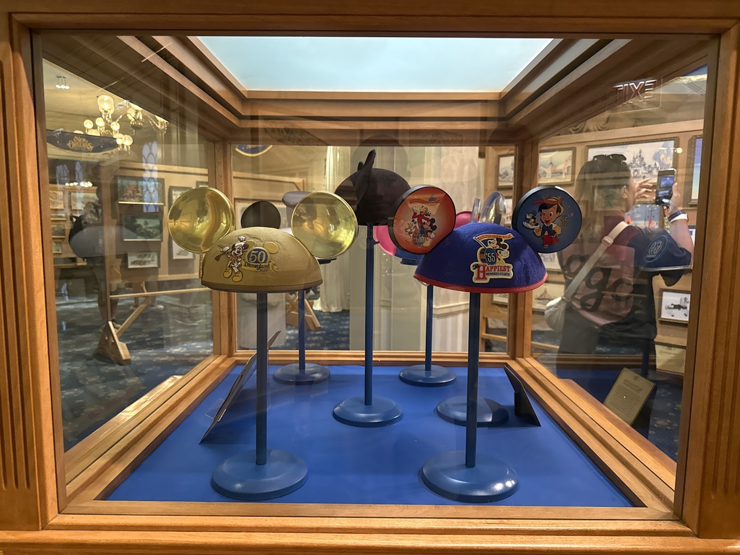 One display cases features Mouse Ears throughout the years, including a pair of 50th anniversary ears and 60th anniversary ears, many of which fans might still be in possession of.
