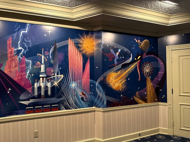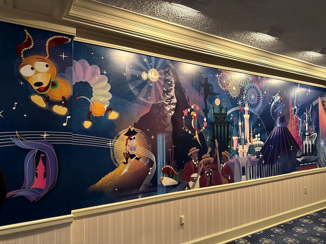 After exiting, guests will walk past colorful murals celebrating the history of the Disneyland Resort with images and icons that are sure to spark nostalgia amongst Disneyland fans past, present, and future.