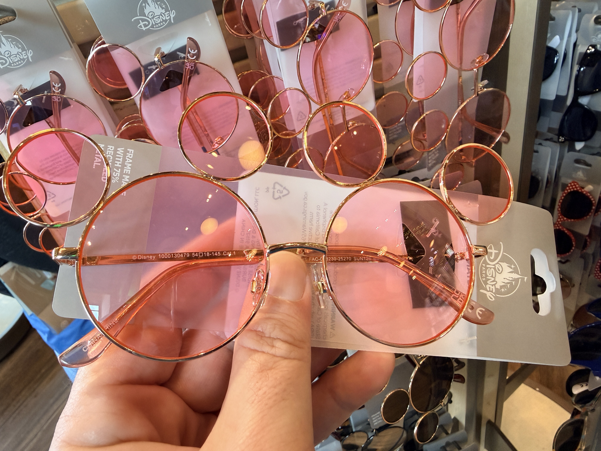Light pink lenses paired with rose gold frames, offering a softer, trend-forward look perfect for spring and summer park days.