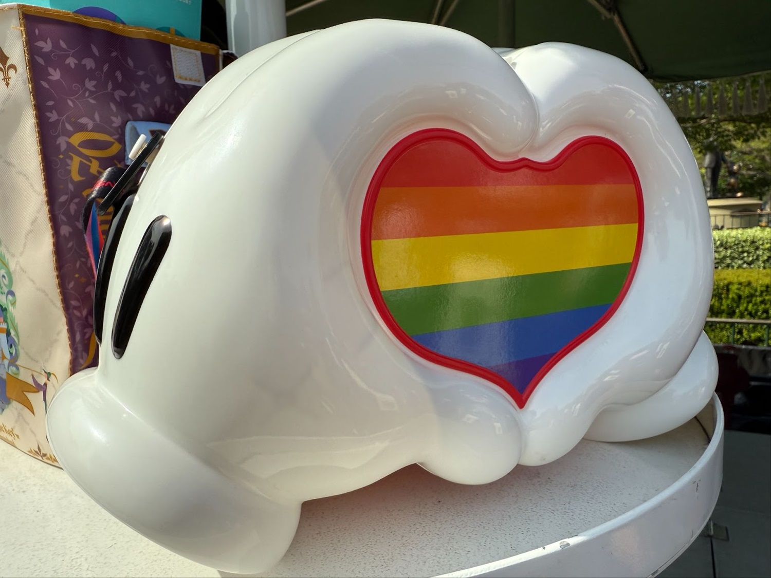 - Featuring Mickey Mouse’s gloves making a rainbow heart, fans can pick up the receptacle for $29.50.