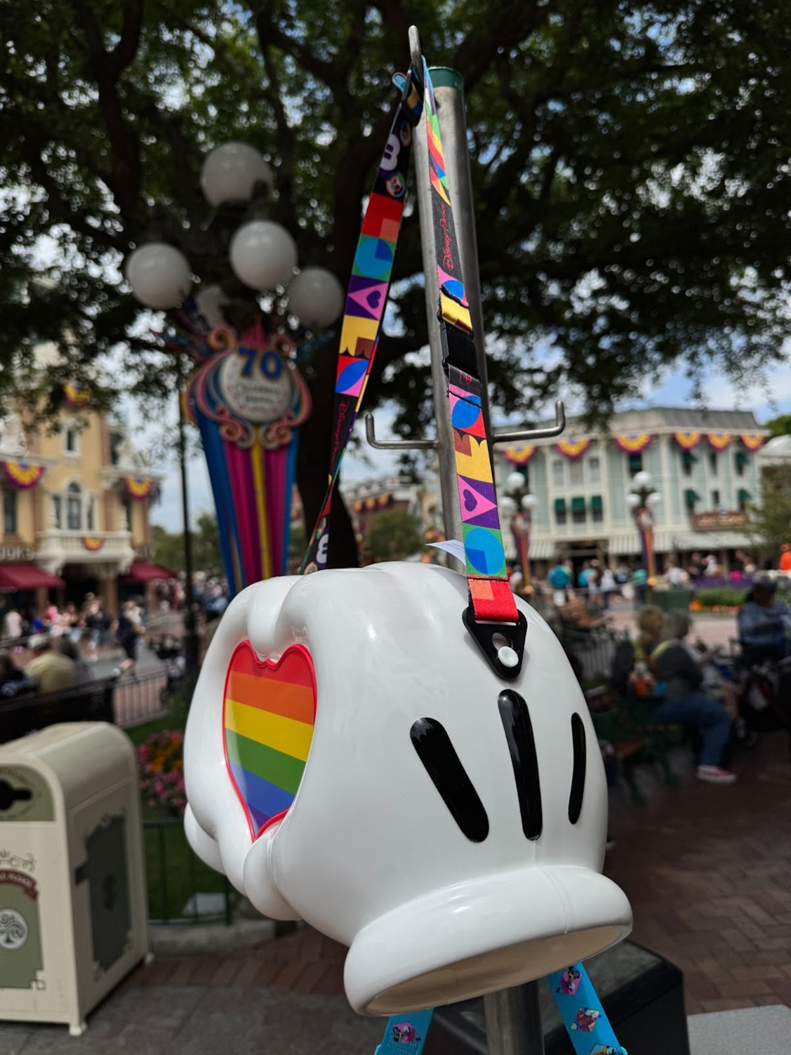 - The bucket also comes with a Pride-themed strap with a block pattern spelling “PRIDE" as well as a rainbow mickey mouse.