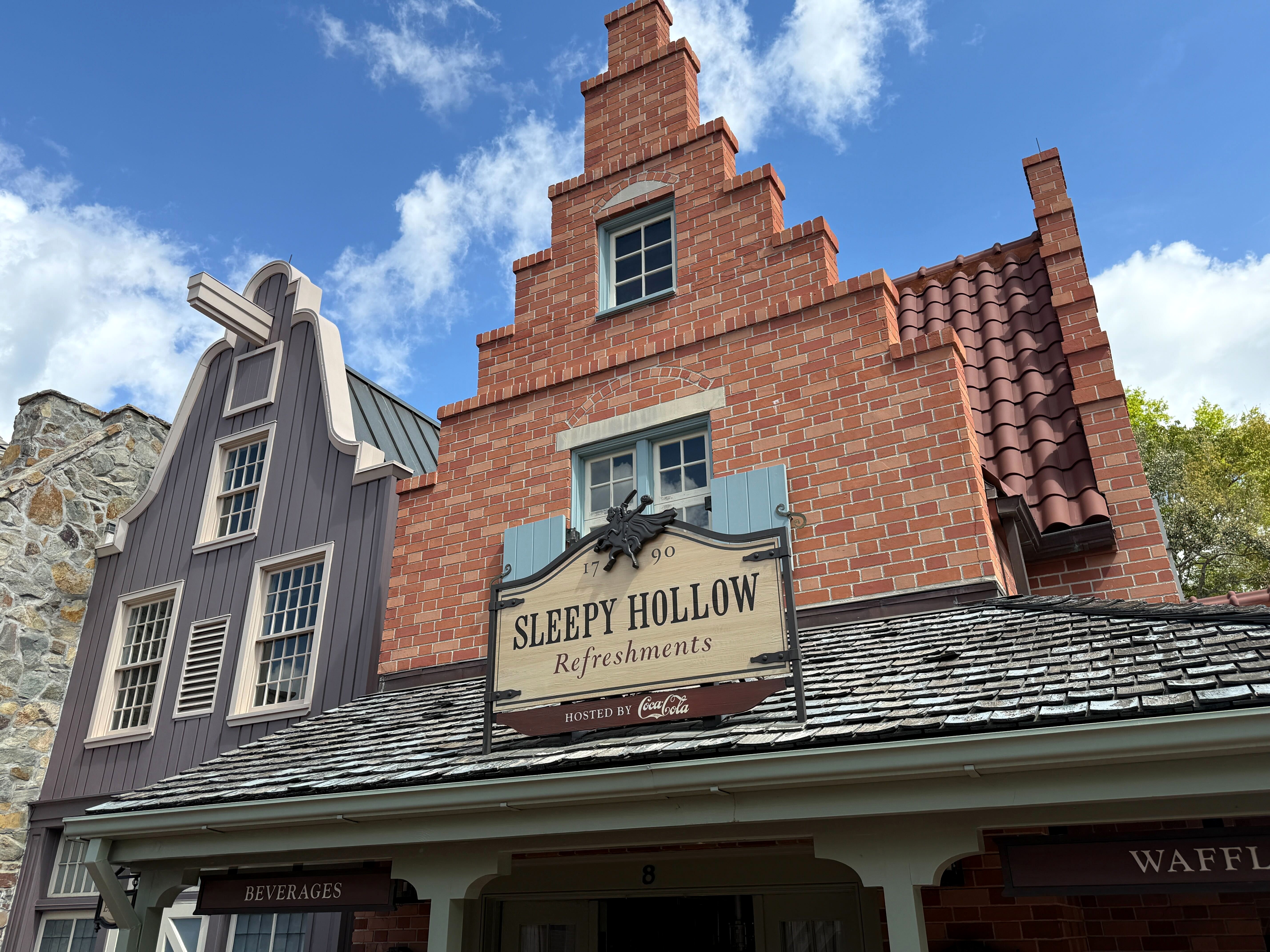 Newly installed signage adds to the rustic feel of Sleepy Hollow Refreshments at the Magic Kingdom.