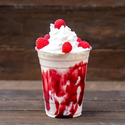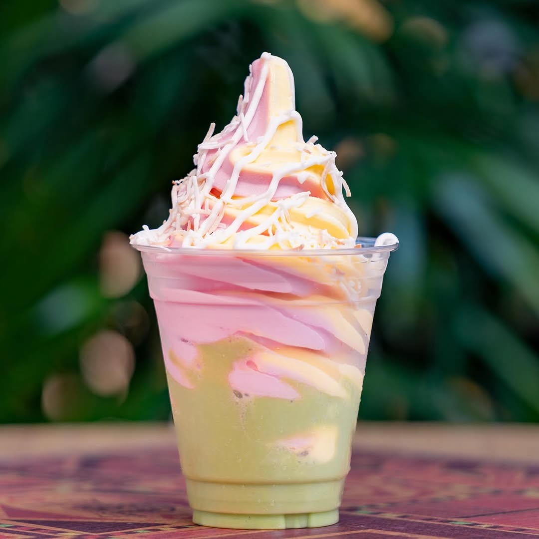 - DOLE Whip Strawberry and Mango swirl topped with white chocolate drizzle and toasted coconut at The Tropical Hideaway
