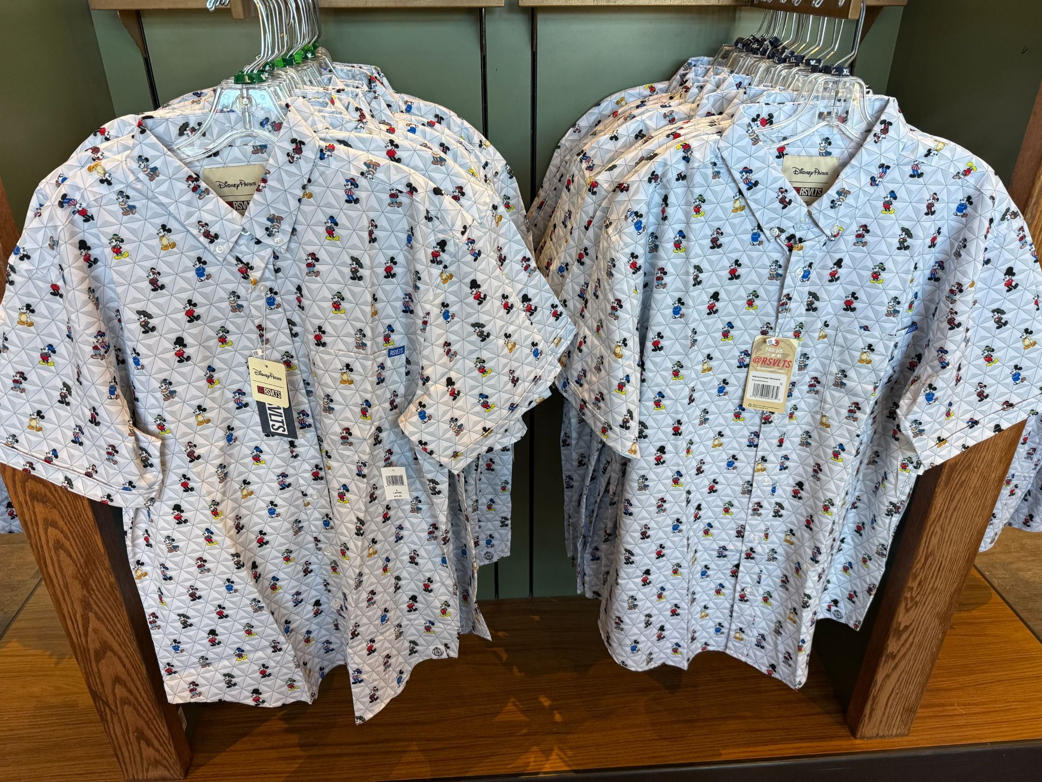 - For those looking for apparel, a new RSVLTS button up shirt has arrived, featuring designs of Spaceship Earth as well as Mickey Mouse at the different country pavilions around the Walt Disney World park.