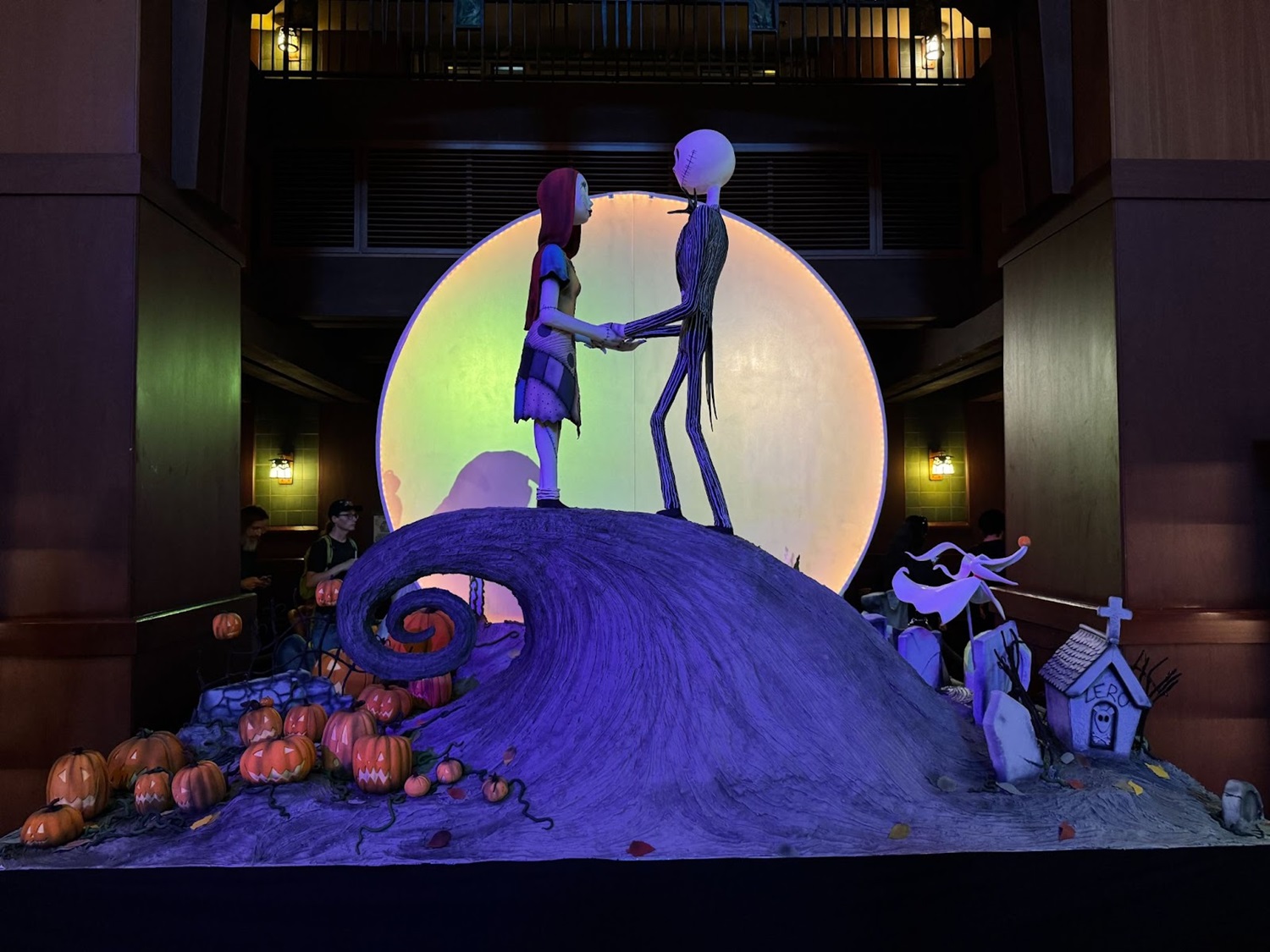 - The front of the display features Jack, Sally, and Zero atop the iconic Spiral Hill, directly inspired by the film.