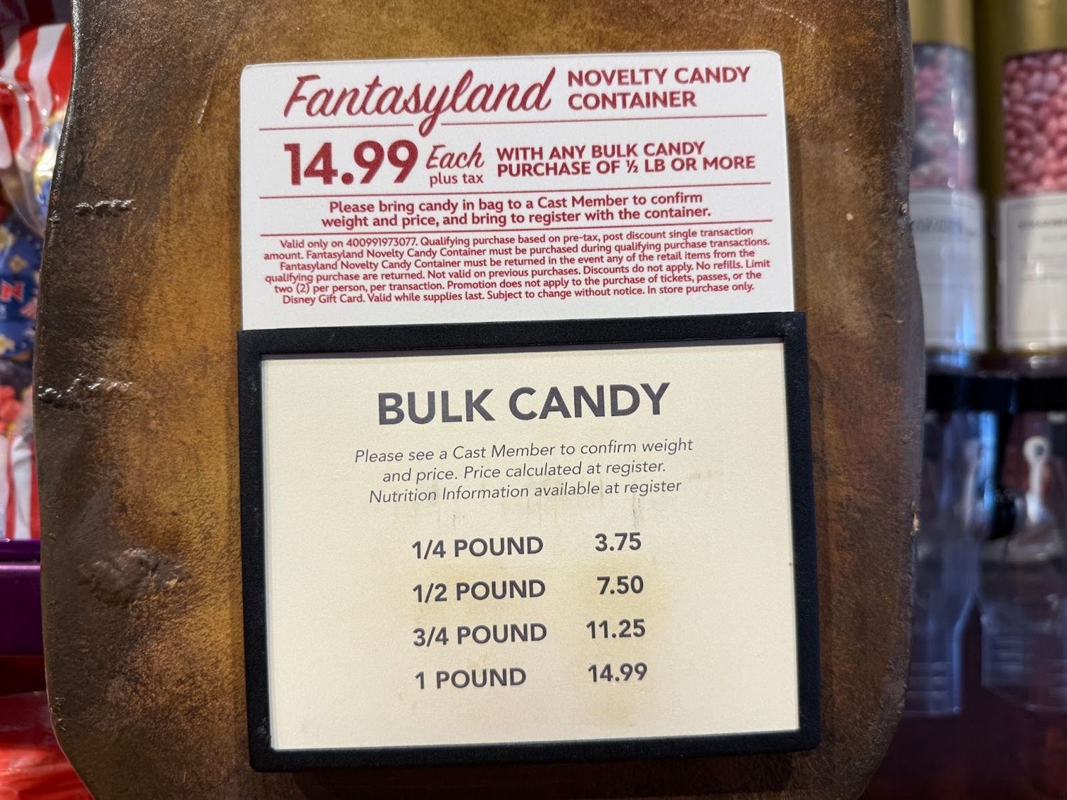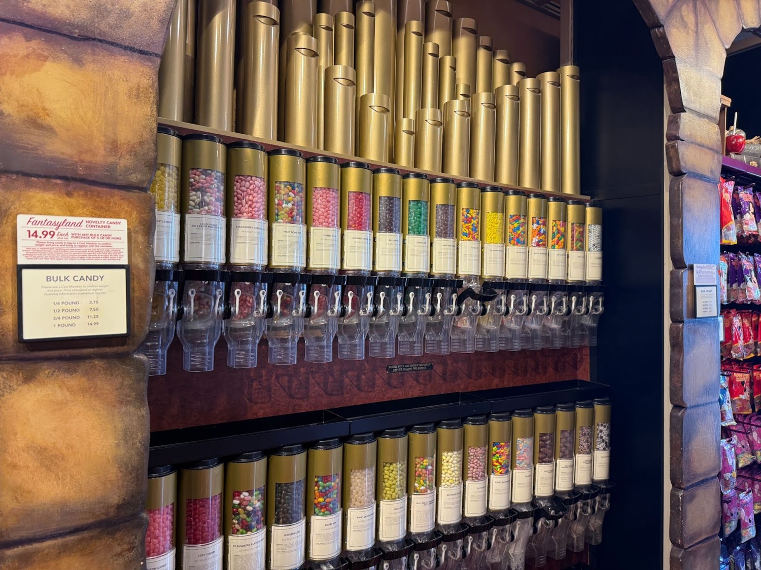 Something sweet has arrived at Disney’s Candy Cauldron at Disney Springs! Now you can get a Fantasyland trash can novelty candy container for $14.99 each with the purchase of 1/4 LB or more of bulk candy.
