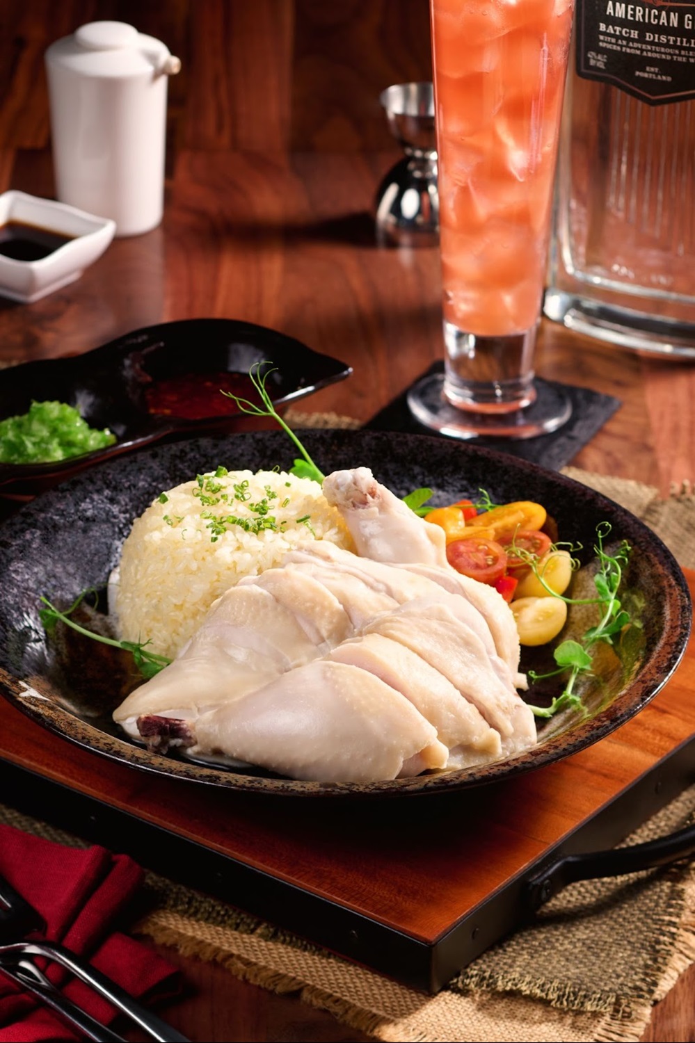 March 2026 - Singapore: Singapore Chicken Rice + Rhubarb Singapore Sling