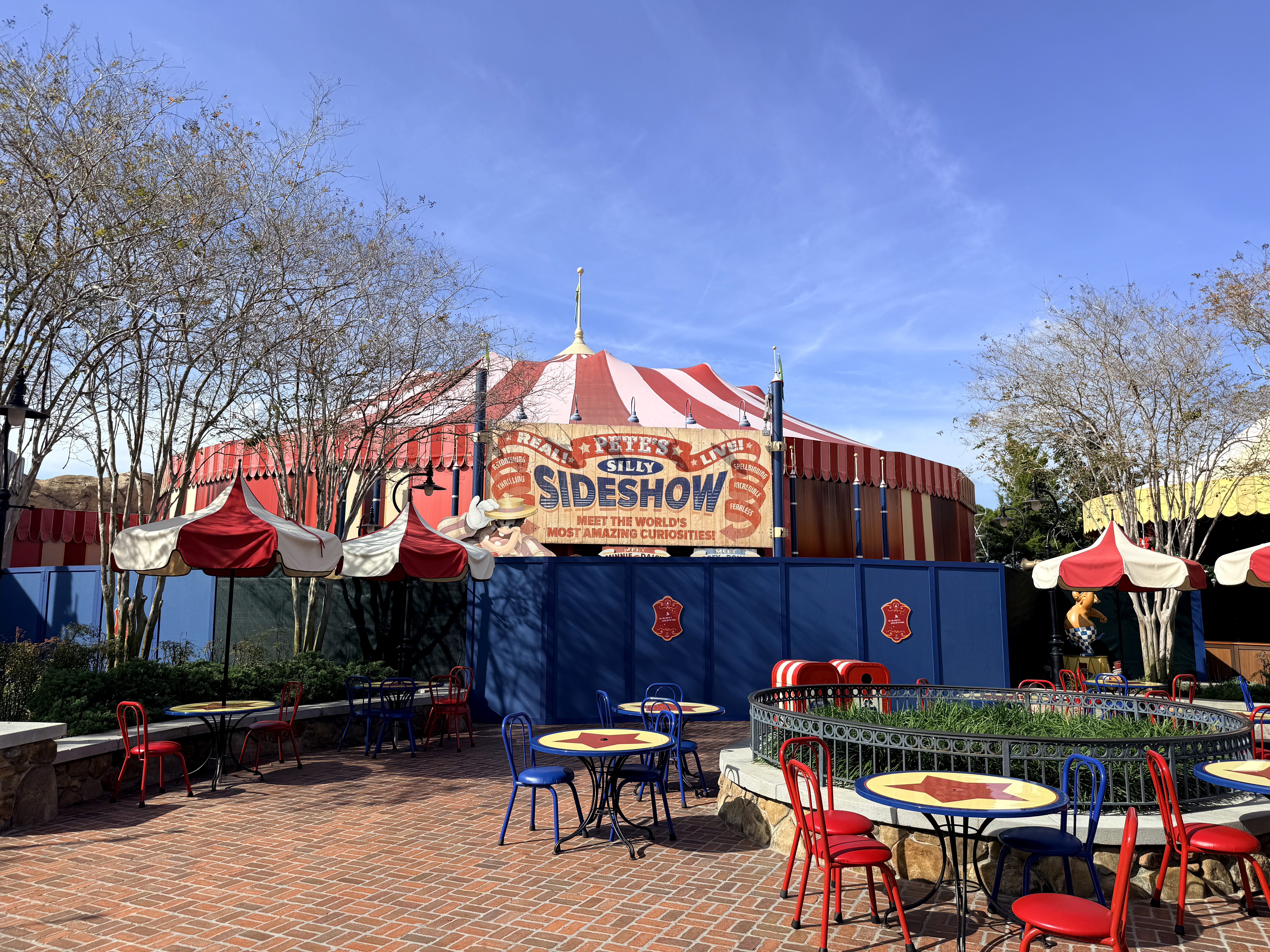 Pete's Silly Sideshow itself is now surrounded by construction walls, as Disney looks to fix many of the obvious wear and tear issues to the tent structure.