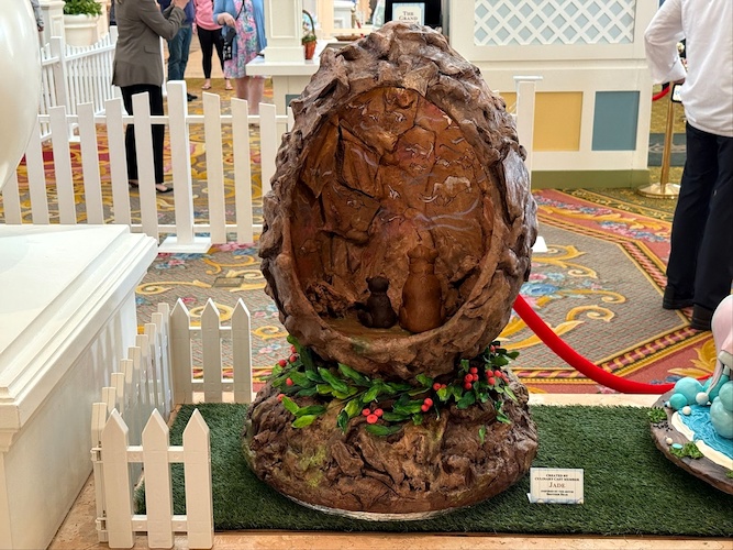 - The Grand Floridian’s Easter Egg display features an array of chocolate sculptures created by Disney’s incredibly talented culinary team.
