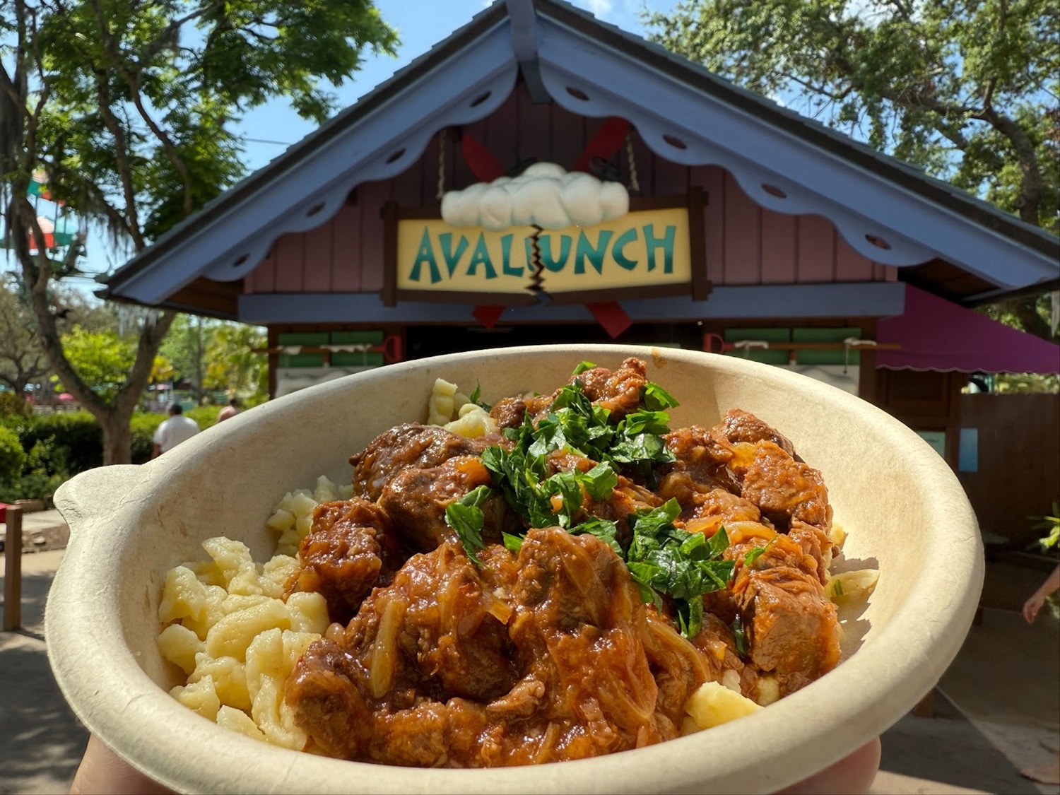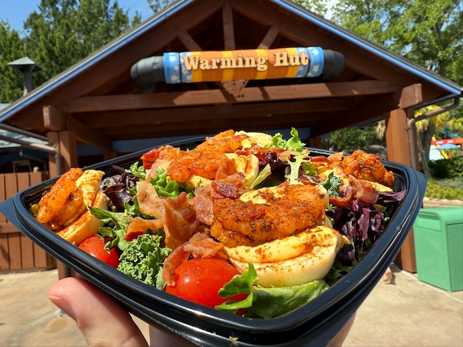 While visiting the park we also checked out some of the food offerings available to guests. Over at Warming Hut, he enjoyed a Cajun Deviled Egg and Shrimp Salad. We also tried the Hungarian Goulash at Avalunch, which was a beef stew with onion and tomato demi glaze served over spaetzle.
