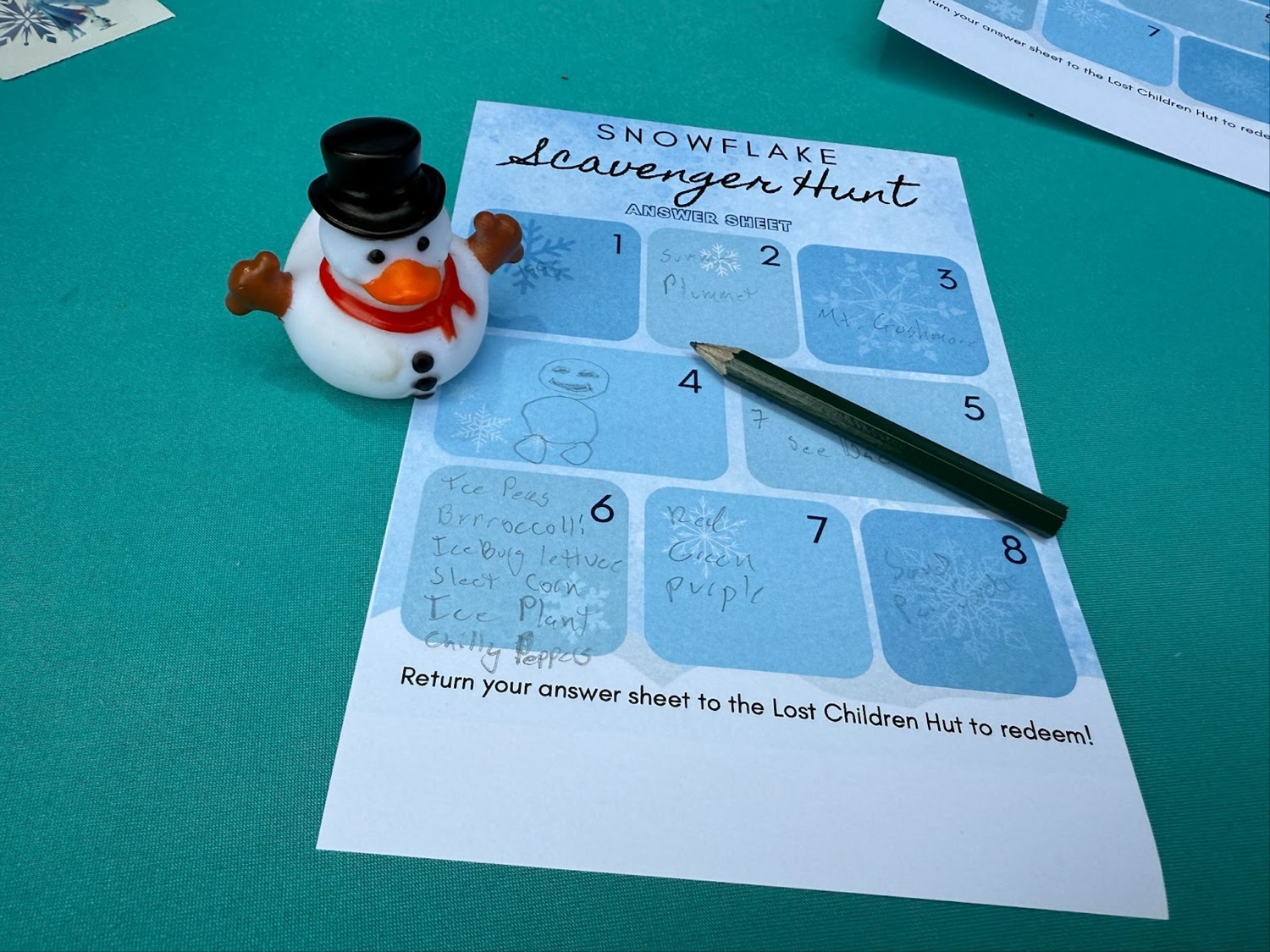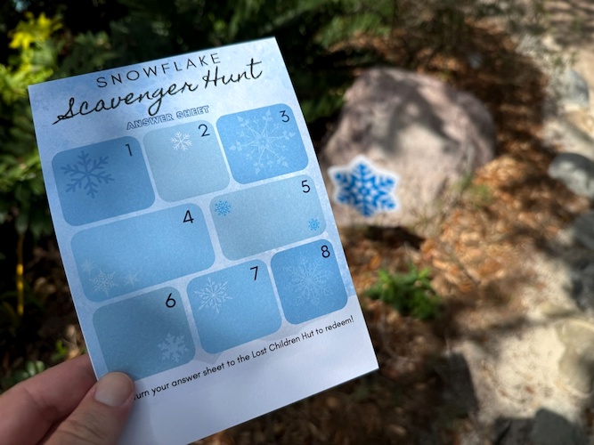 Blizzard Beach was also offering a Snowflake Scavenger Hunt. With a numbered map, guests are sent out on a search for snowflake shaped signs around the park. Each numbered box will require you to complete a task. After completing the scavenger hunt, guests could head back to the Lost Children Hut to redeem for a prize. We grabbed a snowman rubber duck.
