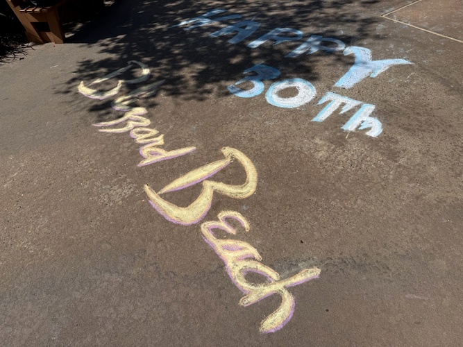 Upon entering the park, cast members decorated the pathways with special birthday messages to the park with sidewalk chalk.