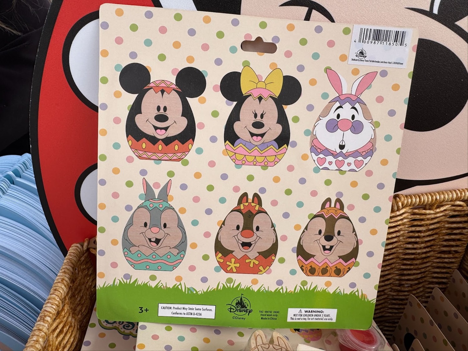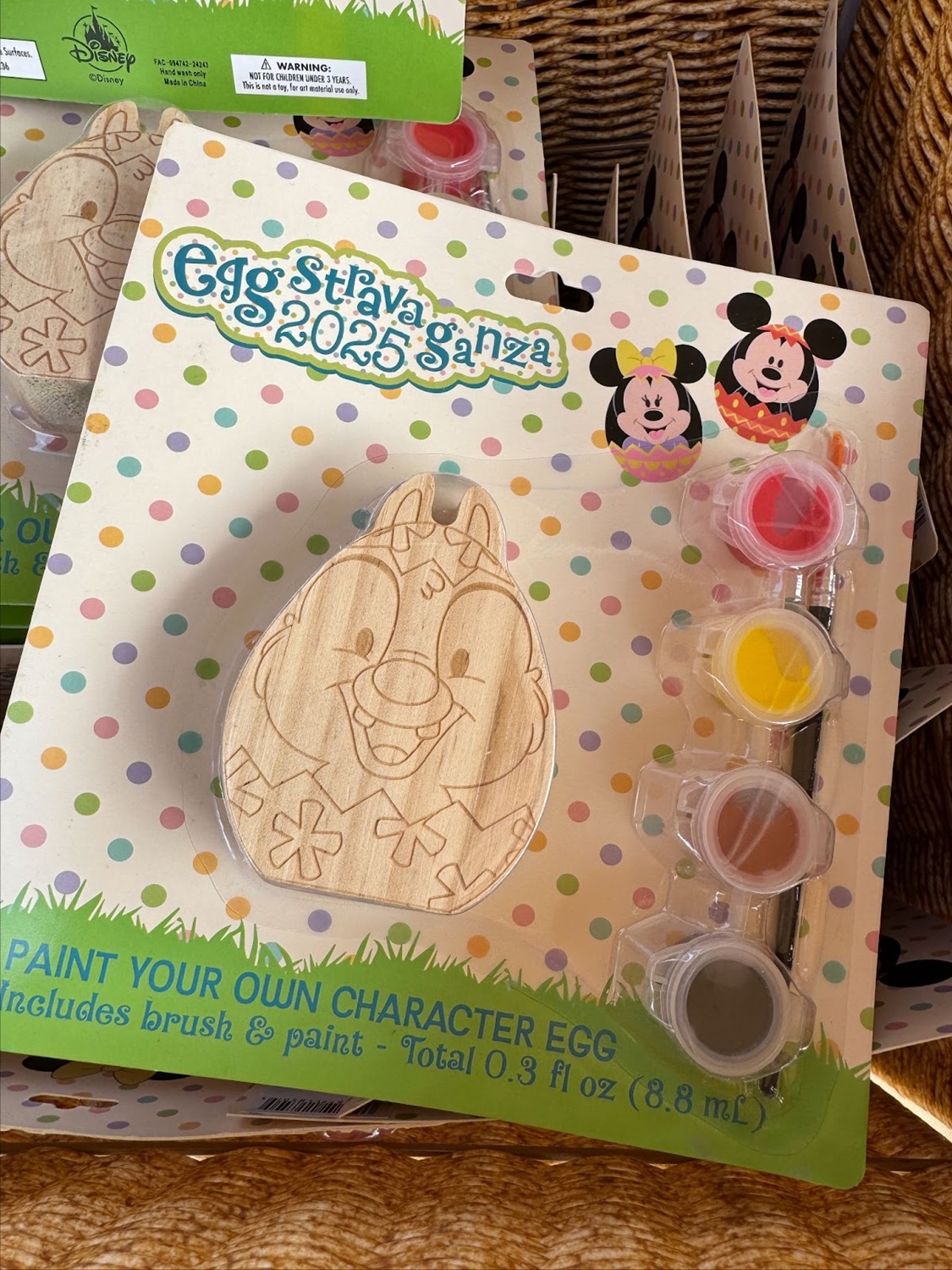 - You’ll be able to choose one character, which includes Mickey, Minnie, the White Rabbit, Thumper, Chip, or Dale. Each set comes with paint and a brush.