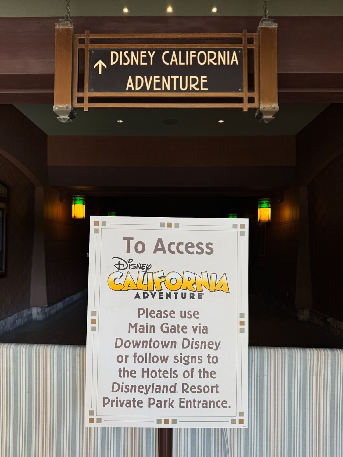 - Closing on March 10th, the dedicated Disney California Adventure entrance for the deluxe hotel is now completely blocked off, with signs instructing hotel guests to use the park’s main entrance.