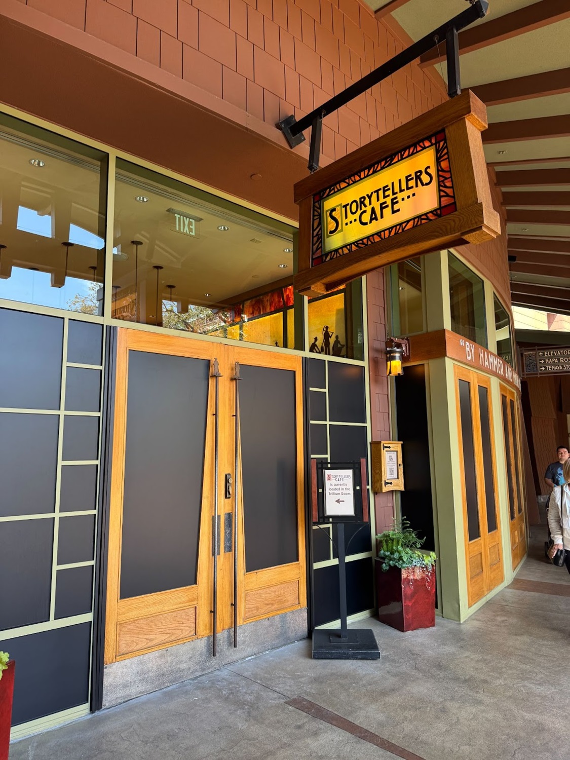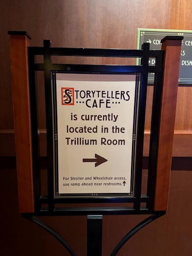 - The park’s Storytellers Cafe character dining location is also currently undergoing a refurbishment. The lower windows at the entrance are currently blacked out, with guests being redirected to the Trillium Room as a temporary location for the dining experience.