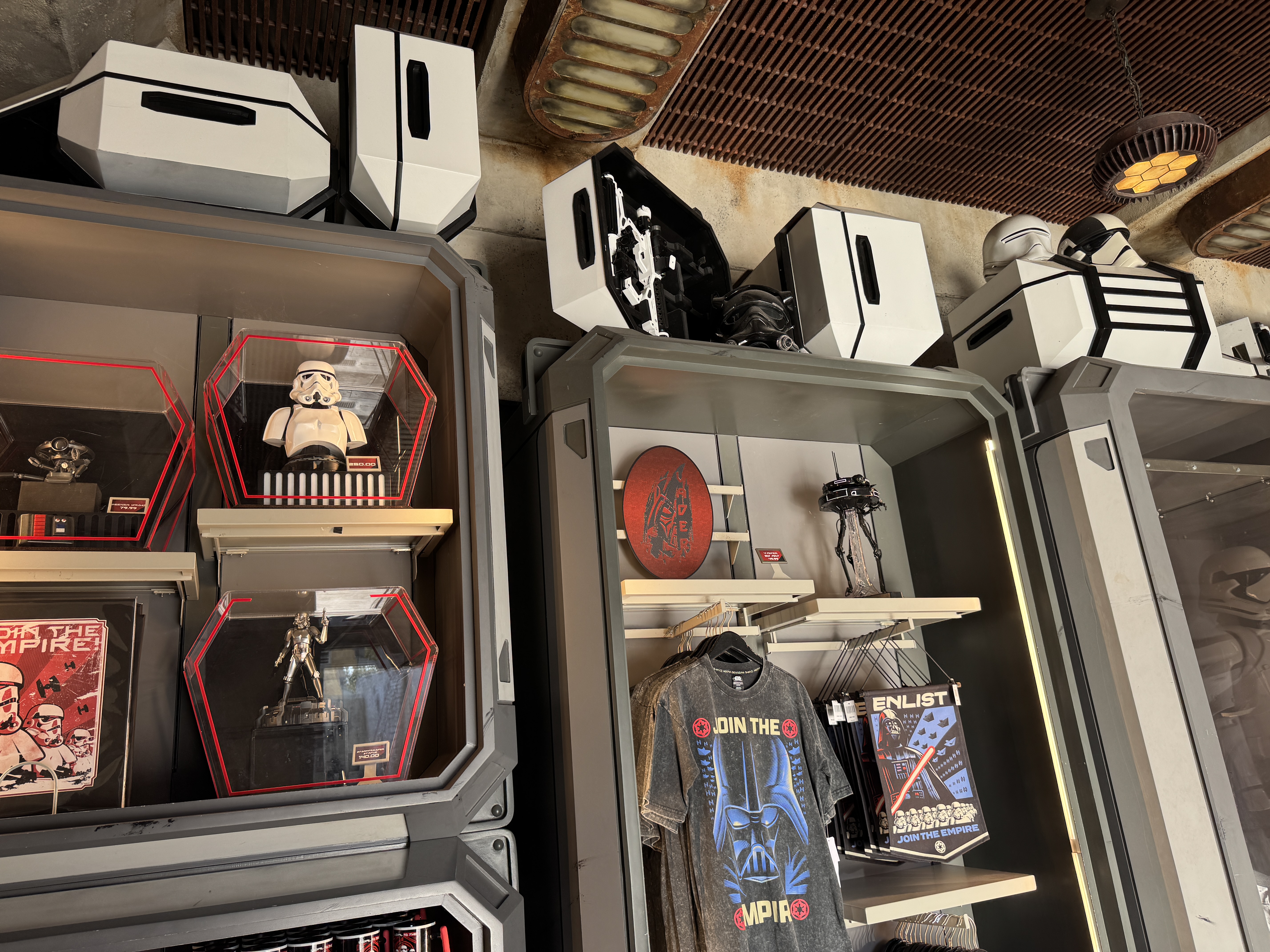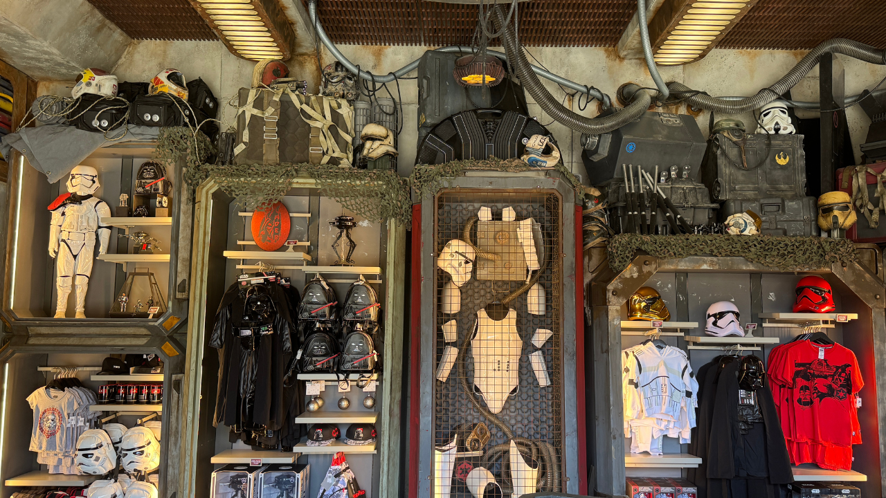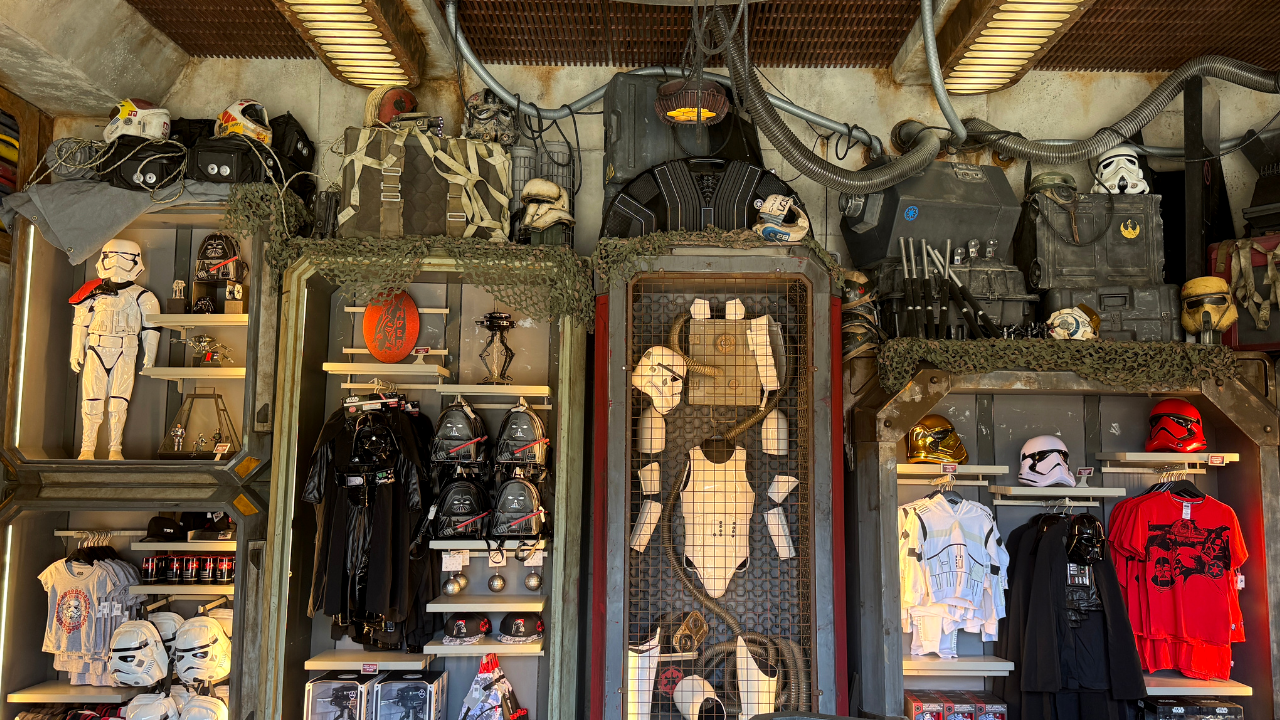 Up until now, with Galaxy's Edge firmly set in the Sequel Trilogy era, First Order Cargo had reflected its name by not only mainly selling First Order-connected merchandise, but also by its decor, which focused on First Order helmets, weapons, and gear filling the space.