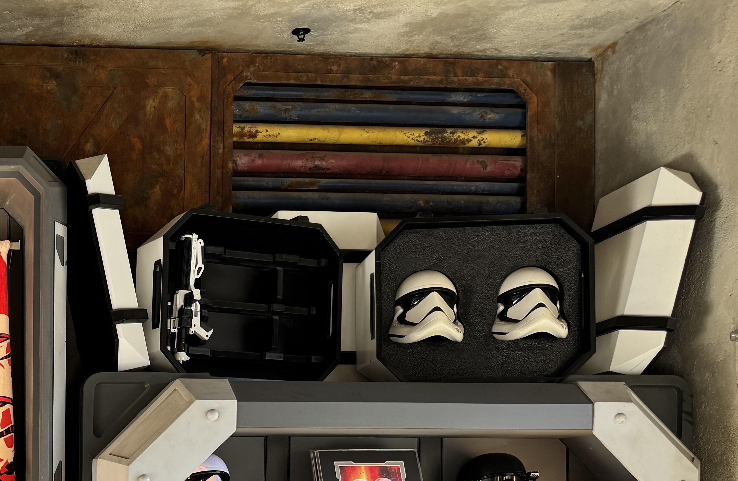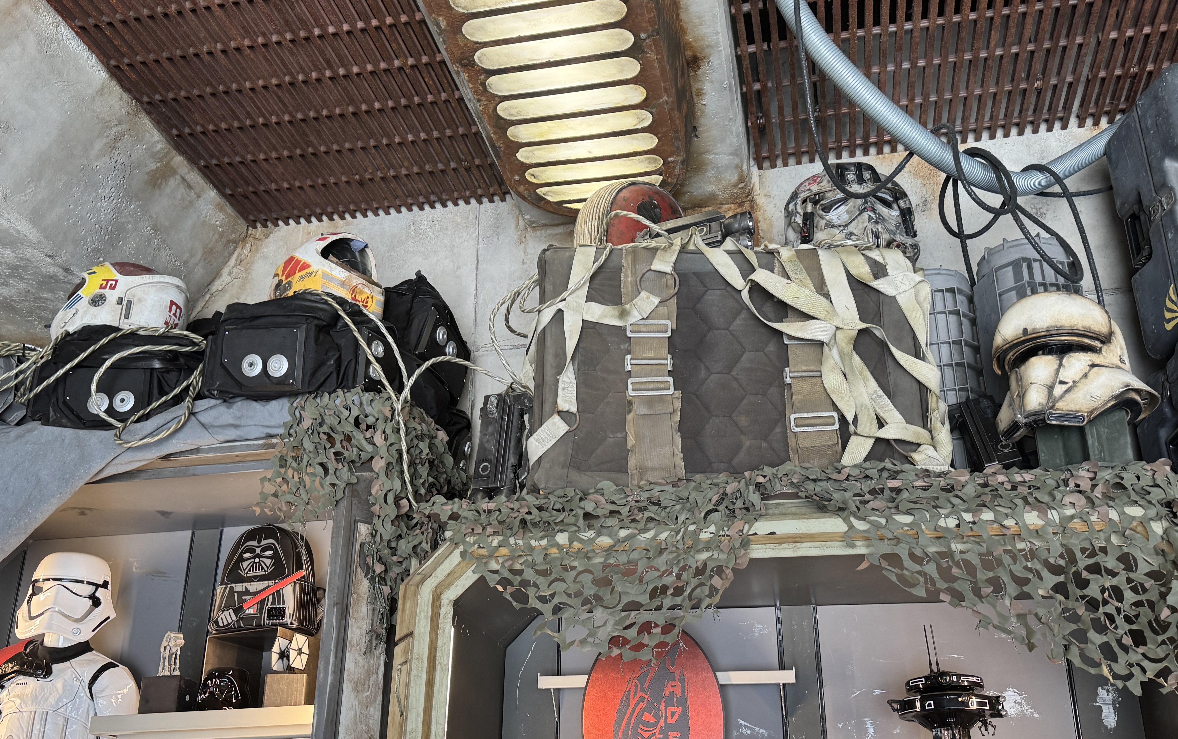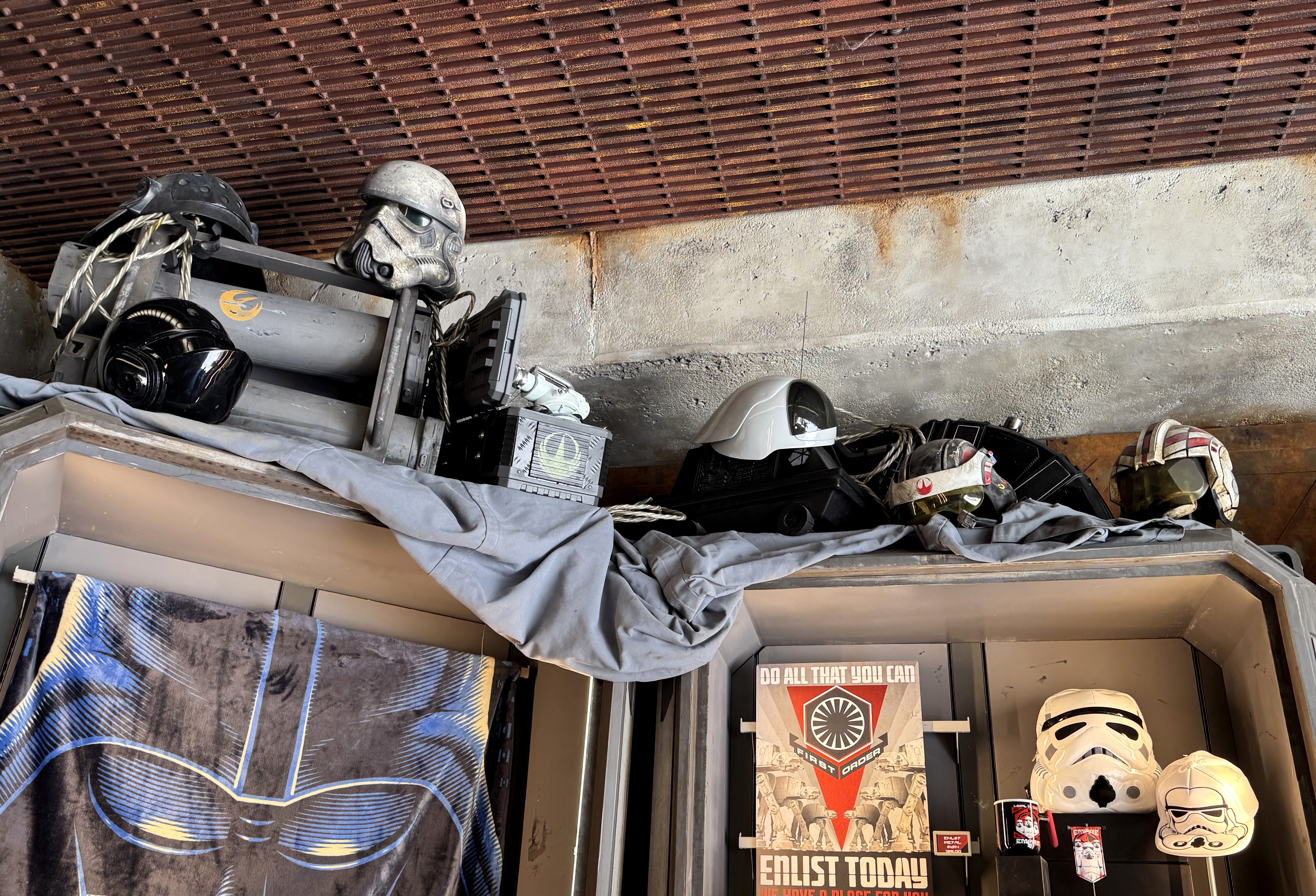Up until now, with Galaxy's Edge firmly set in the Sequel Trilogy era, First Order Cargo had reflected its name by not only mainly selling First Order-connected merchandise, but also by its decor, which focused on First Order helmets, weapons, and gear filling the space.