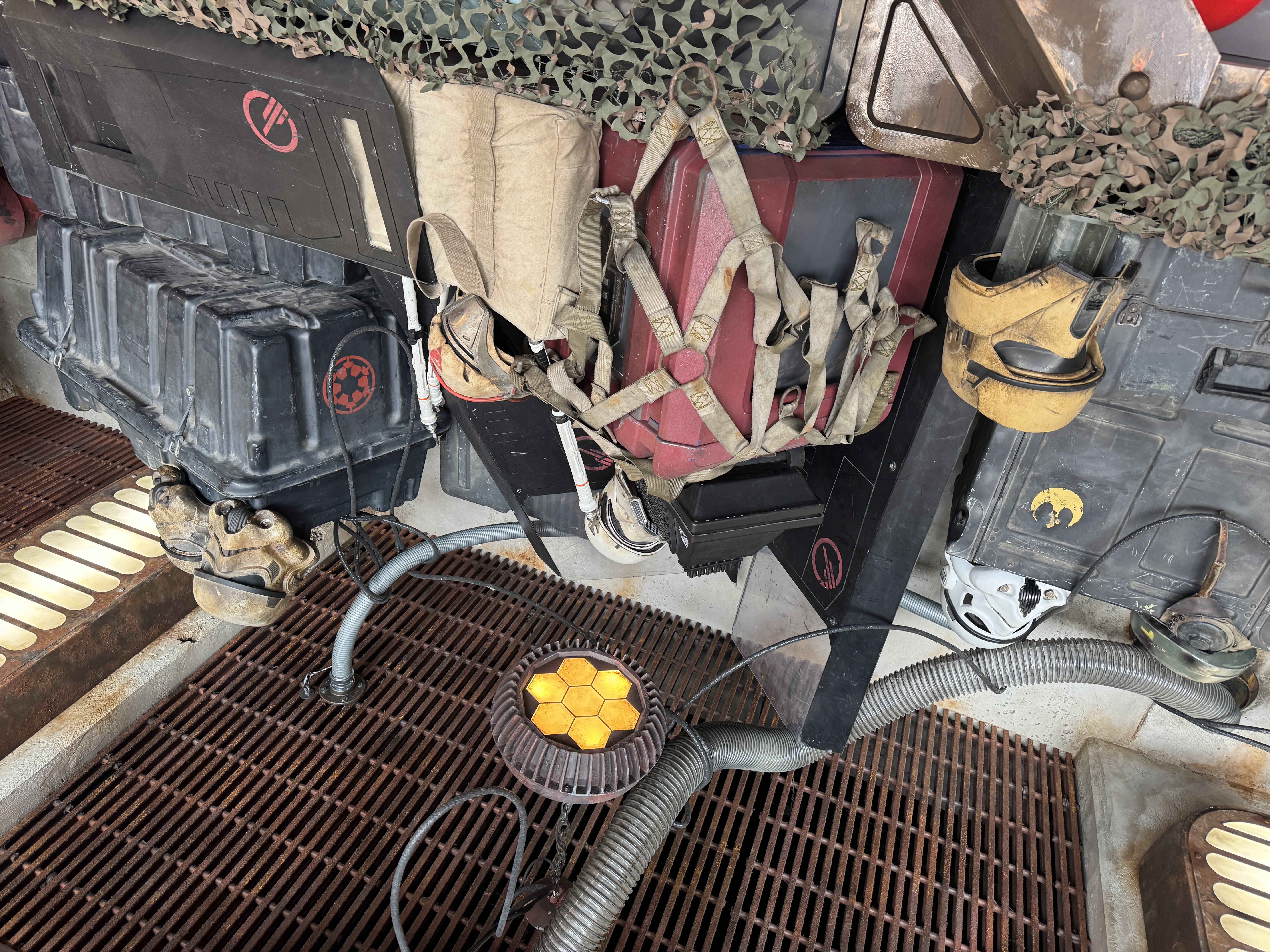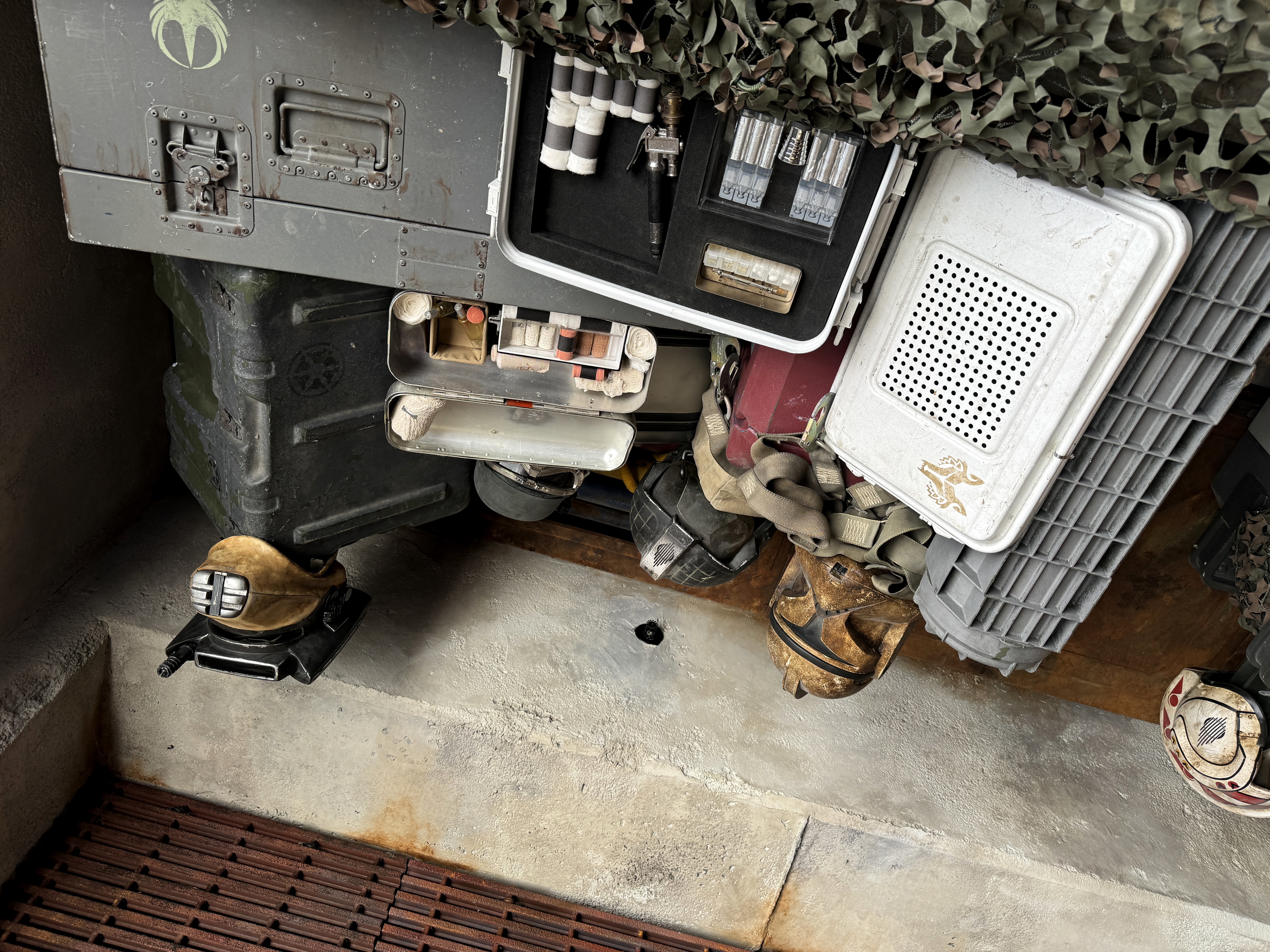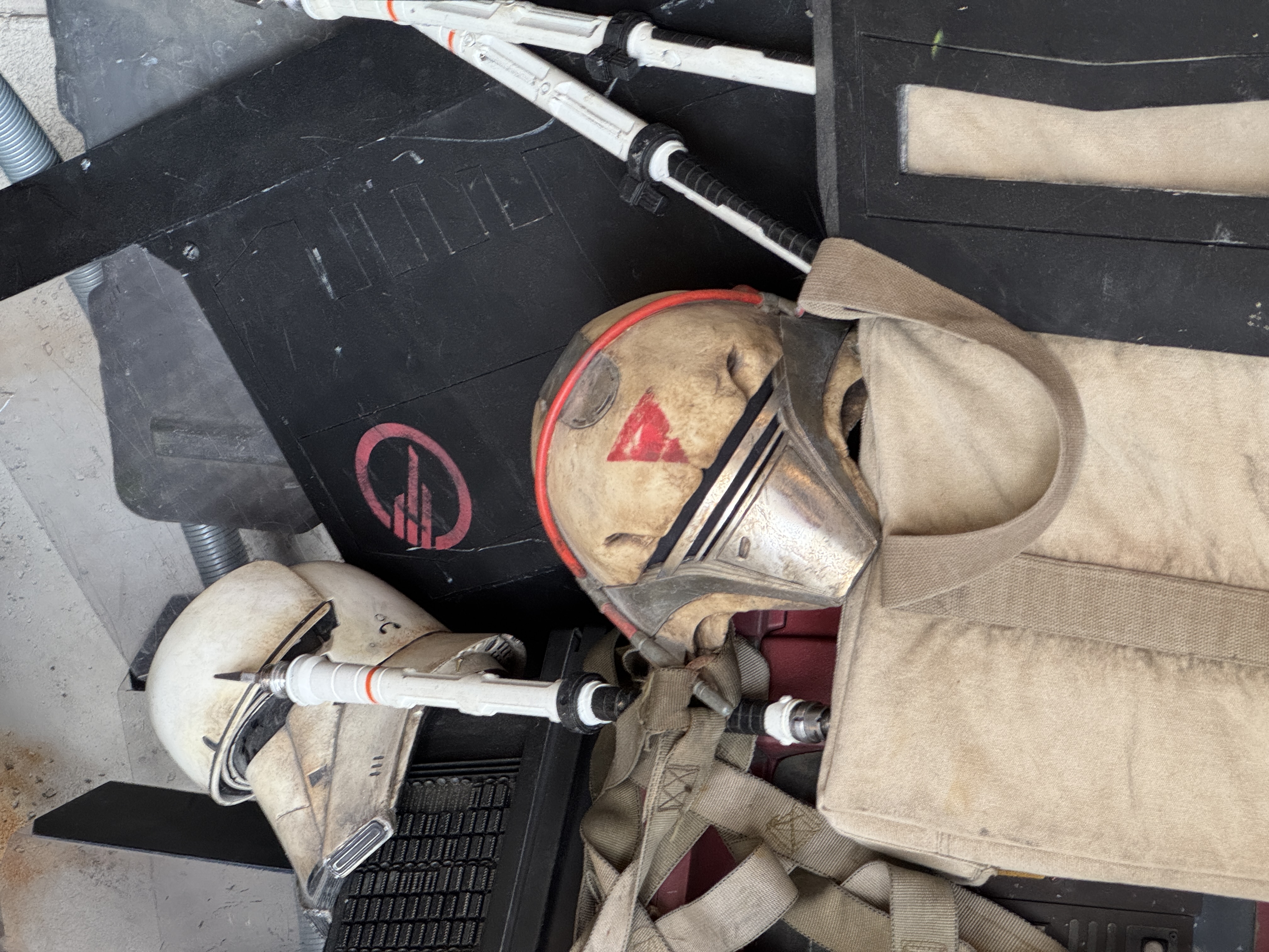 A-Wing Pilot helmets can be found in one section that also includes an AT-AT Pilot helmet and a Tank Trooper helmet (as first seen in Rogue One), plus one other helmet, partially obscured, that's among those that are harder to identity, but will create some fun for fellow Star Wars obsessives visiting Galaxy's Edge to hone in on.