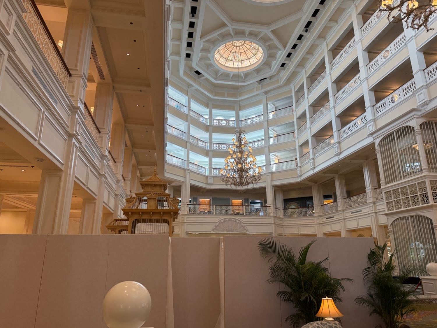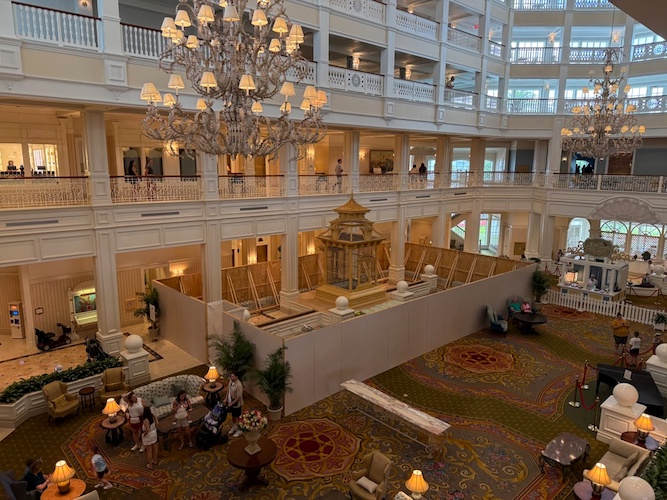 Just a few days after renovations were announced for the lobby of Disney’s Grand Floridian Resort and Spa at Walt Disney World, the process has begun, with construction walls now up.