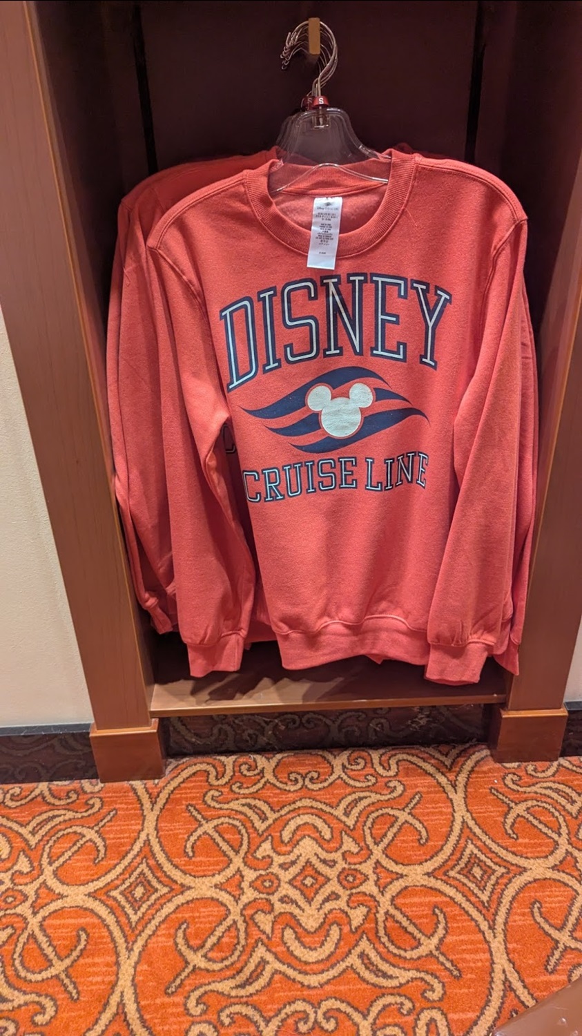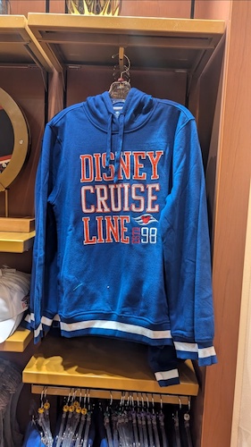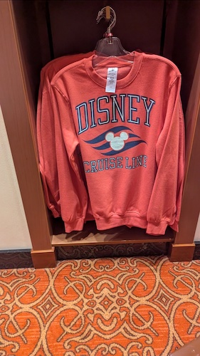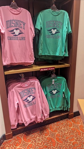 Disney Cruise Line logo t-shirts and sweatshirts are available in several colors. The t-shirts retail for $34.99, while the sweatshirt is $49.99.