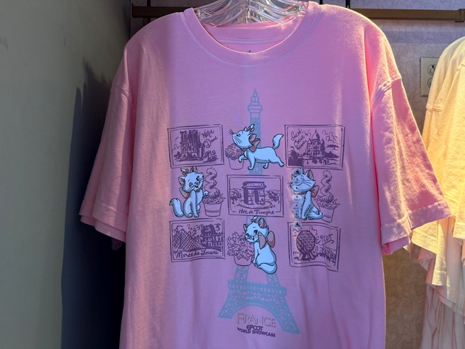 And lastly, there is an overall shirt for World Showcase, with a circular design that includes imagery all around it evoking all the different areas.
