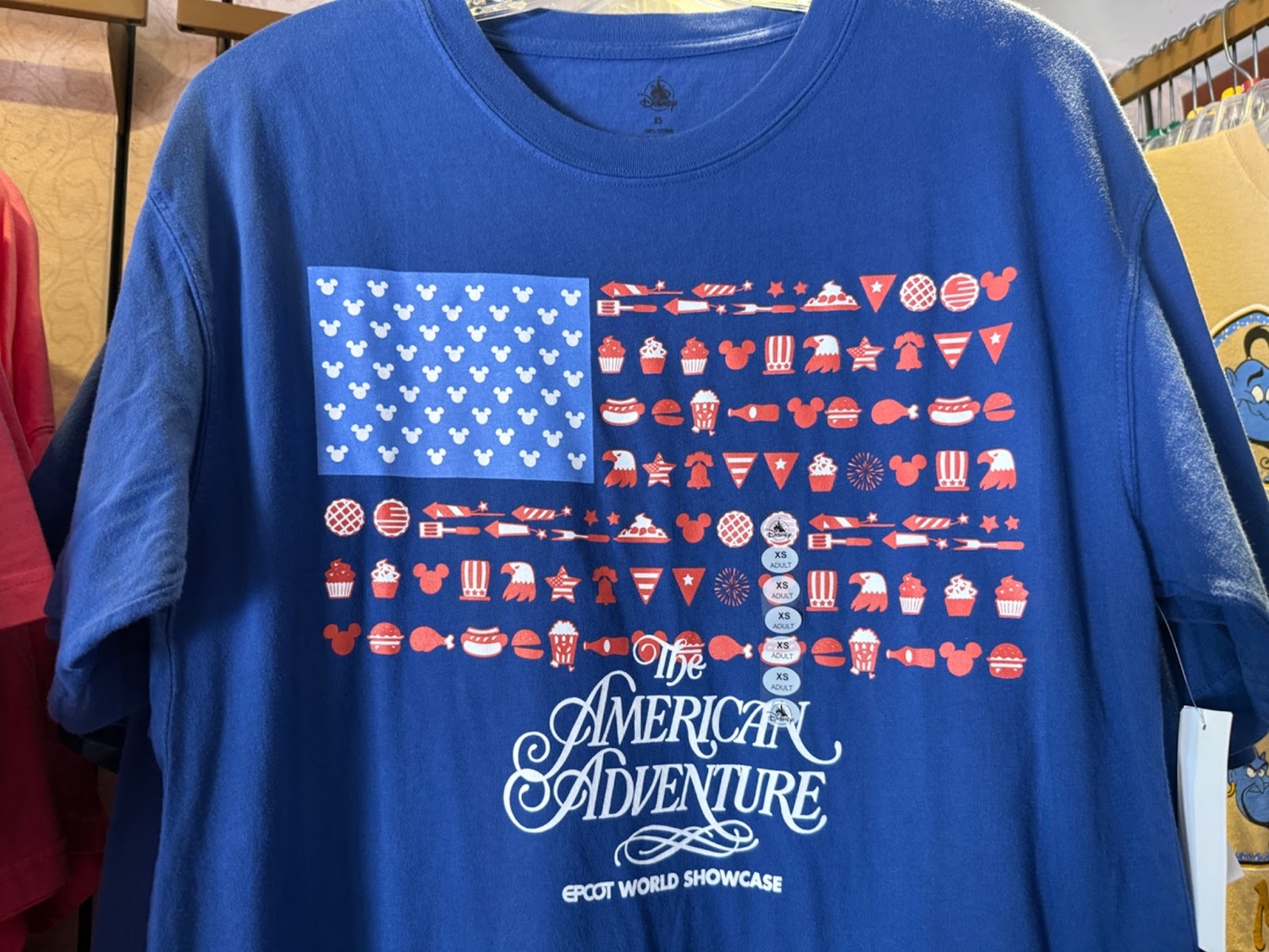 While the new American Adventure shirt focuses on food and other imagery connected to the area, all forming the shape of an American flag.