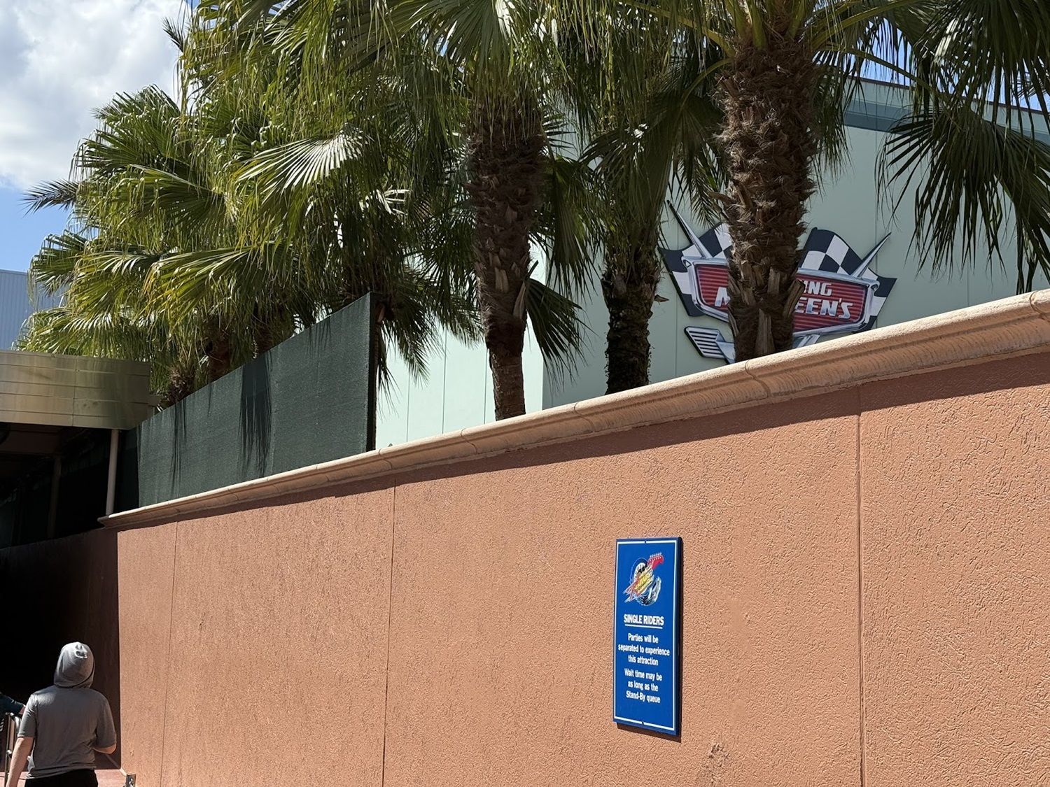 The first signs of the Disney Villain takeover of the former Lightning McQueen’s Racing Academy Show have begun, with new scrim rising near Rock n’ Roller Coaster.