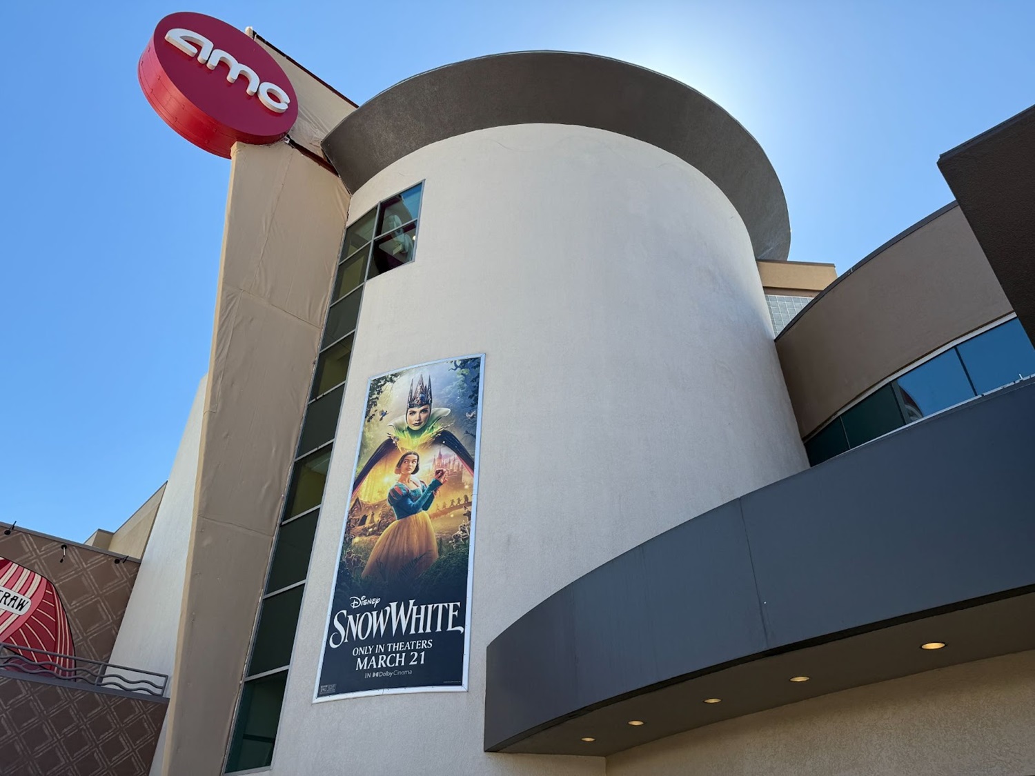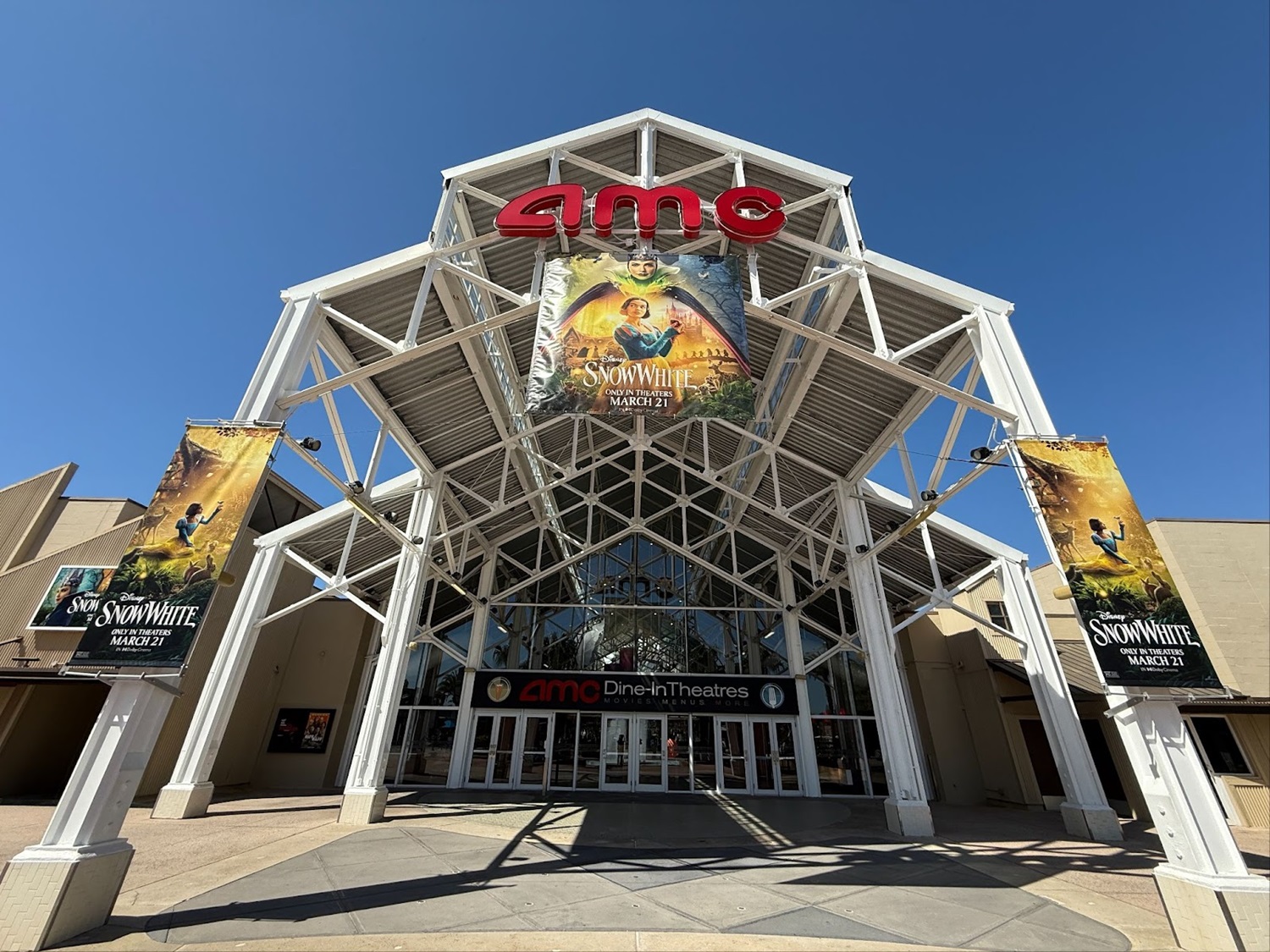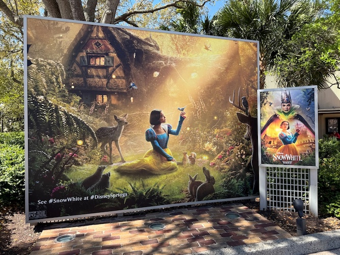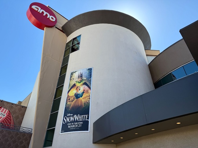 The AMC Theatres location at Disney Springs is decked out in celebration of the upcoming Snow White live-action remake.